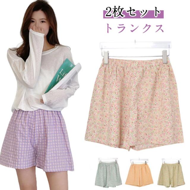 可愛い 綿 締め付けない ふんどしショーツ 下着 おやすみパンツ コットン 2枚組 パジャマ レディース 鼠径部 黒ずみ インナー ナイトショーツ 花柄 チェック柄 下着 女性用 産後 術後 敏感肌 トランクス 通気性
