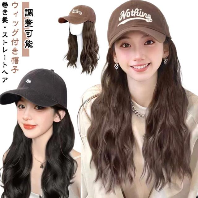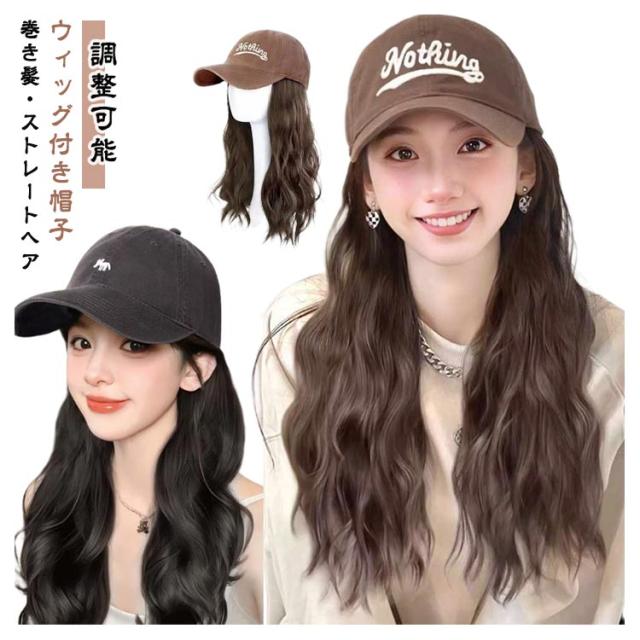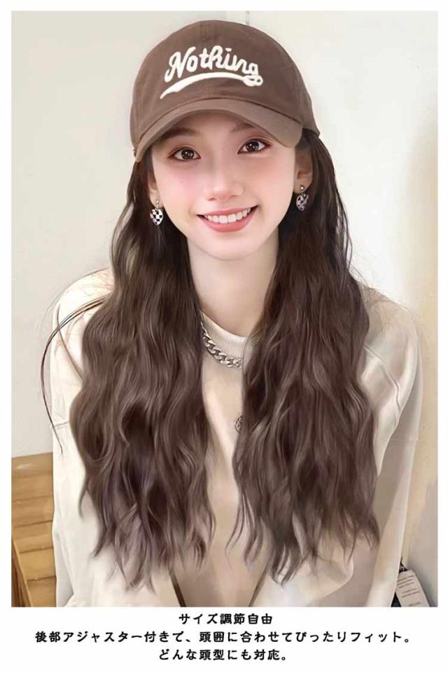 帽子付きウィッグ キャップウィッグ レディース ウェーブ つば広 調整可能 小顔効果 医療用ウィッグ 帽子付きウィッグ つば広 可愛い おしゃれ