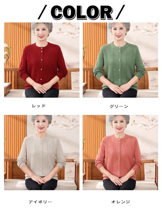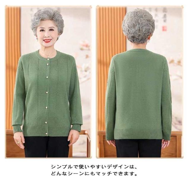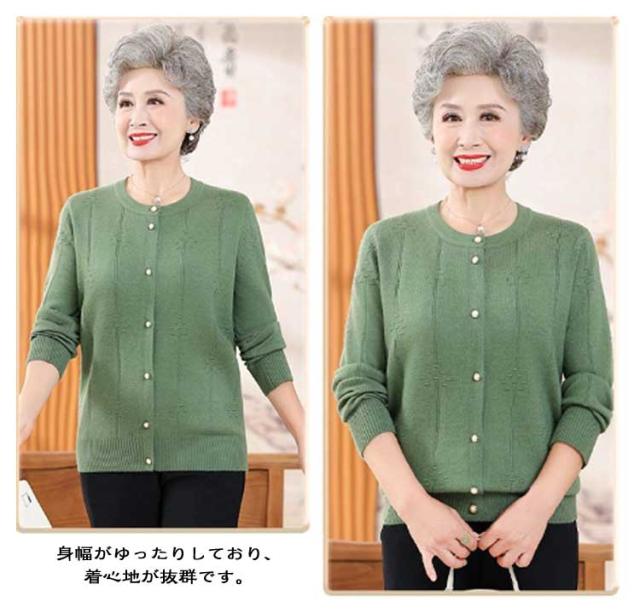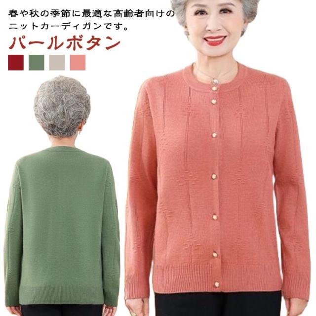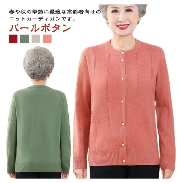 ゆったり クルーネック 薄手 春 祖母 シニアファッション 婦人 お年寄り トップス カーディガン 秋冬 パールボタン シニアファッション ミセス 羽織り 高齢者 ニット 老人 おしゃれ 洋服 レディース 60代 70代 80代 90代 おばあちゃん 着やすい 敬老の日 プレゼント ギフト