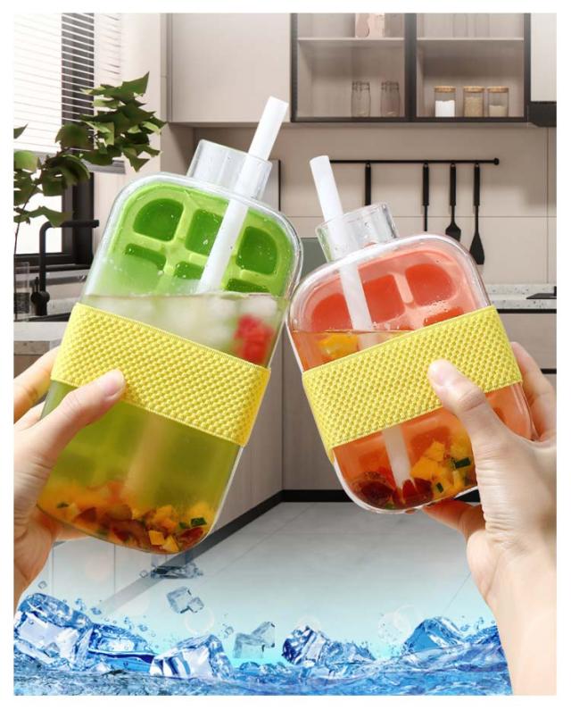 製氷皿 角型製氷皿 ストロー アイスパック 製氷皿 製氷機 アイスボール ウィスキー アイスキューブ 水筒型製氷皿 カーリング 角型アイスキューブ 2in1 製氷ポット 0接触 360°漏れ防止 冷たい飲み物 500ml 800ml 送料無料