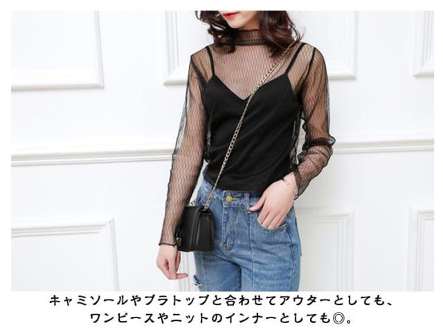 | シースルートップス 大人可愛い透け感デザイン インナーにもアウターにも使える キャミソールやブラトップと合わせてアウターとしても、ワンピースやニットのインナーとしても◎。 ストレッチ性抜群で着心地快適 | |