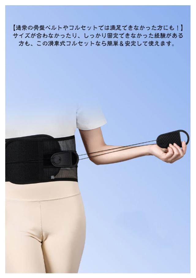 | 滑車のチカラで楽々引き締め!強力固定 骨盤コルセット 【軽い力でしっかり固定できる】 滑車が内蔵された構造で、滑車の原理を活かし、弱い力でもしっかりと骨盤を引き締めることができます。 【通常の骨盤ベルトやコルセットでは満足できなかった方にも!】 サイズが合わなかったり、しっかり固定できなかった経験がある方も、この滑車式コルセットなら簡単&安定して使えます。 【腰痛対策に最適】骨盤を正しい位置で支え、姿勢を整えることで、腰への負担を軽減。腰痛の予防・緩和をサポートします。 【腰痛軽減のためのコルセットとして大人気】腰にしっかりフィットし、痛みを感じにくく、動きやすさも確保。日常生活や仕事中の腰をサポートします。 【姿勢矯正にも使える多機能コルセット】猫背や骨盤の歪み、ぽっこりお腹の改善にも効果的。普段の姿勢からしっかり見直したい方におすすめの骨盤コルセットです。 【通気性抜群】通年使用できるメッシュ素材を採用しており、長時間の装着でもムレにくく快適!季節を問わずオールシーズン使える実用的な設計です。 【着脱の難しいホックはなし】強力なマジックテープ仕様なので、簡単にしっかりと固定できます。 【S〜2XLとサイズ展開豊富】小さいサイズから大きいサイズまであるので、レディース・メンズ問わず、20代 30代 40代 50代 60代と世代問わずご使用いただける骨盤ベルト兼用コルセットです。 【使用シーン】腰痛が気になる方、猫背やぽっこりお腹が気になる方、姿勢の歪みが気になる方、むくみが気になる方、腰に負担がある作業をする方、産前産後の骨盤ケア、家事や仕事をしながら体型改善など…様々なシーンでご使用いただけます。 【骨盤ベルトとコルセットのいいとこ取り!】オフィスやリモートワークでデスクワークが多い方、おうち時間が多く座っている時間が長い方にもオススメです。 【骨盤サポーターなのにガードルのような使用感!】薄型設計の骨盤コルセットだから、洋服の下にも着用可能。まるでガードルのように使えて、体型補正やボディメイクにもぴったりです。 【ダイエットやくびれづくりにも最適】引き締め効果によりウエストラインを整え、補正ベルトとしてボディラインの引き締めにもアプローチ!ショート丈のガードルのように、補正ベルトとしてダイエットやボディメイクに最適です。 | |