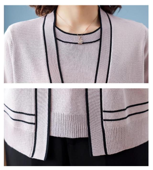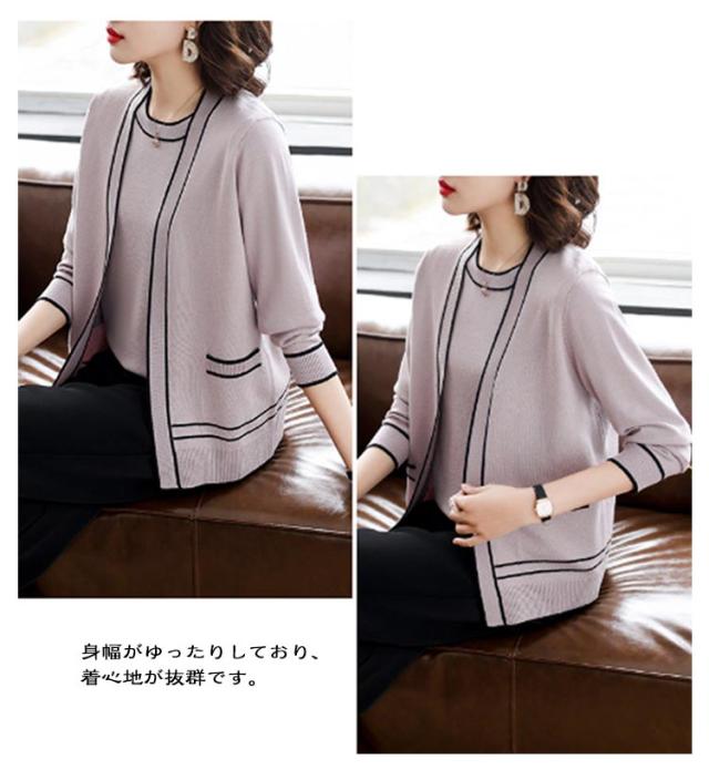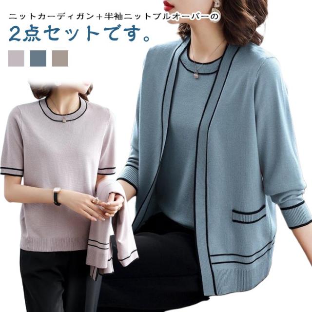40代 薄手 ニットカーディガン 春 レディース 洋服 秋冬 クルーネック ニット セーター 母の日 ニットプルオーバー ニットトップス 2点セット 婦人 パイピング 羽織り 半袖 ミセス おしゃれ 50代 60代 70代 80代 秋物 きれいめ 半袖 敬老の日 プレゼント ギフト