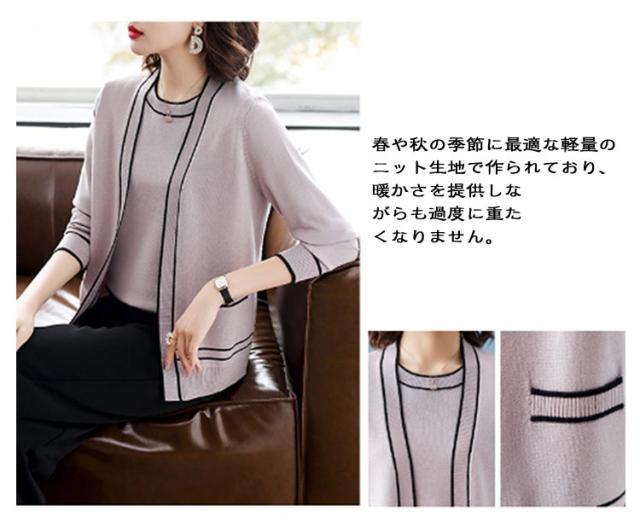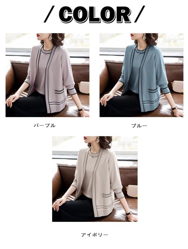 | ニットカーディガン+半袖ニットプルオーバーの2点セットです。 ニット素材を使用した柔らかい肌触りのカーディガン+プルオーバー。伸縮性もあり着心地バツグン! 春や秋の季節に最適な軽量のニット生地で作られており、暖かさを提供しながらも過度に重たくなりません。 身幅がゆったりしており、着心地が抜群です。 夏には、カーディガンは日除けや空調対策として、半袖トップスはインナー使いや、もちろん1枚着としてもそれぞれ活躍してくれます。 別々でもお楽しみいただけるアイテムです。 シンプルで使いやすいデザインは、どんなシーンにもマッチできます。 | |
