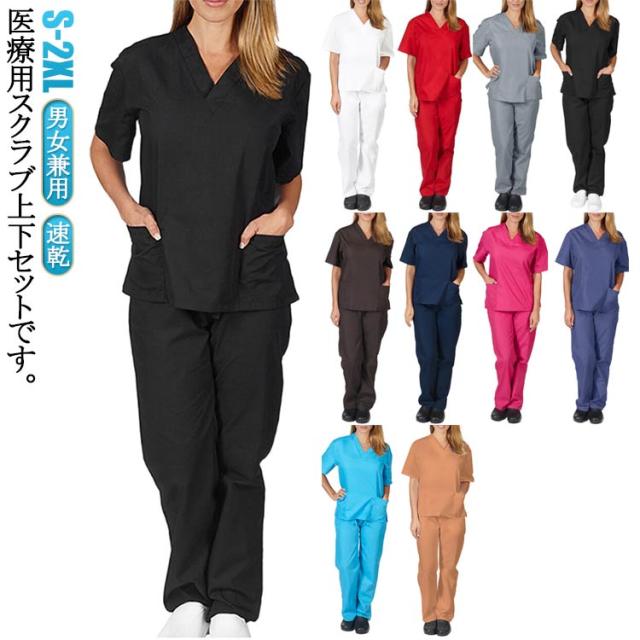 男女兼用 ナース服 Vネック セット レディース 医療用 パンツ 男性 女性 半袖 上下セット 医療 メンズ ズボン 調理 ユニフォーム ポケット大容量 白衣 ナーススクラブ 速乾 病院 看護師 整体師 介護士 スクラブ 歯科衛生士 歯医者 クリニック 作業服 介護施設 春夏