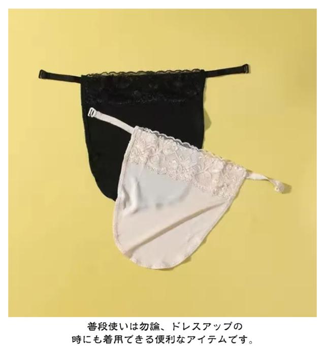 | 胸元のチラ見え防止対策に ブラカバー 胸の谷間を隠す 3枚セット ブラジャーのストラップに引っ掛けてスナップボタンを留めるだけの、着用簡単なブラカバーです。 首周りが広くあいた洋服もこれがあれば安心できます。 前かがみになった時や胸元が大きくカットされたデザインも心配なくおしゃれを楽しめます。 シンプルなのでカジュアルからパーティまでシーンを選ばす使えます。 ピンポイントで隠せるので「着膨れがイヤで谷間部分だけ隠したい」「暑がりなので重ね着はちょっと」という方、また「プチプラで何色か揃えたい」という方にぴったりなアイテムです。 普段使いは勿論、ドレスアップの時にも着用できる便利なアイテムです。 開きすぎた胸元の洋服とのコーディネイト、パーティードレスのアクセント、入学式(入園式)、卒業式(卒園式)などさまざまな機会で活用できます。 【こちらの商品はカバーのみです。】 | |