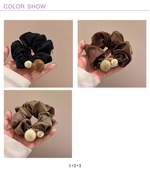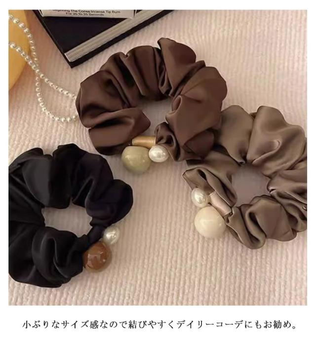 | 3点セット!簡単な結び方でもオシャレになるヘアアクセサリー♪ 程よい光沢のある生地と対象も抜群でまとめ髪を一気に華やかに。 小ぶりなサイズ感なので結びやすくデイリーコーデにもお勧め。 カジュアルになりがちなシュシュですが、 女性らしい上品スタイルにも合わせられる一品。 | |