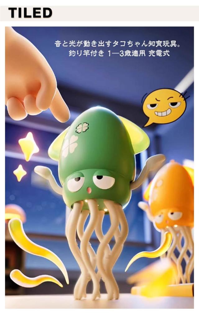| 音と光が動き出すタコちゃん知育玩具。釣り竿付き 1—3歳適用 充電式 障害物を感知して自ら這い回り、歯固め・紐遊びで発育も促すUSB充電式プレゼントに最適! 障害物回避センサー: 賢い動きで障害物を自動的に回避し、安全に動き回ることができます LEDライト&音楽機能: 楽しい音楽とともにLEDライトが点灯し、より魅力的な演出を実現します ダンシング機能: イカの形をした本体が音楽に合わせてリズミカルに踊り、子供たちを楽しませます 知育効果: 動きや音、光の組み合わせにより、子供の感覚機能の発達を促進します インテリア性: かわいいイカのデザインで、お部屋のアクセントとしても活用できる癒しのおもちゃです | |