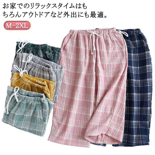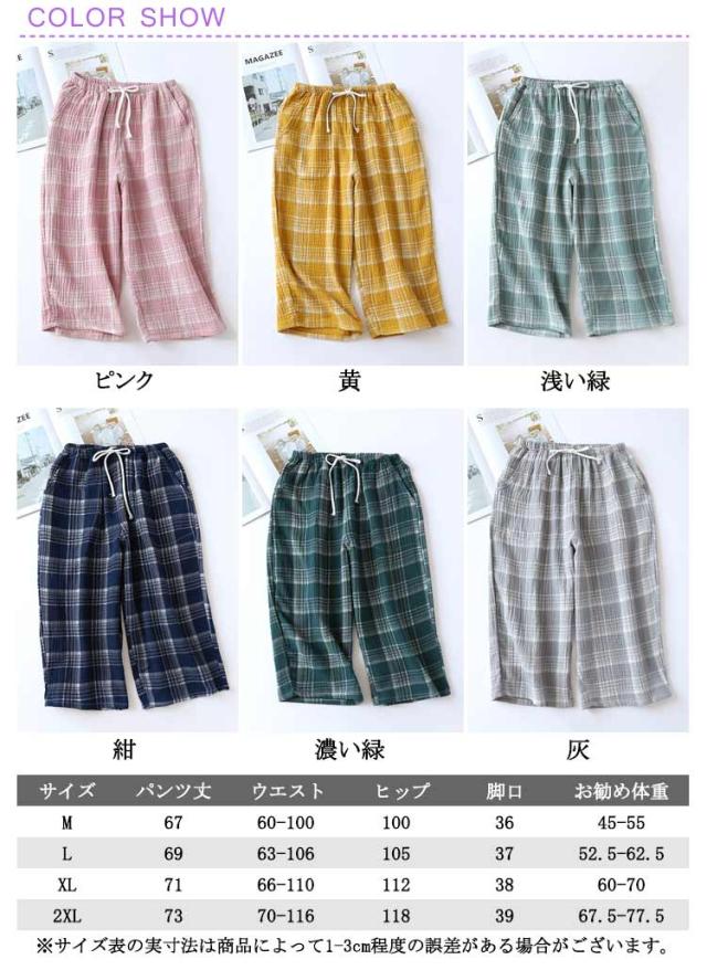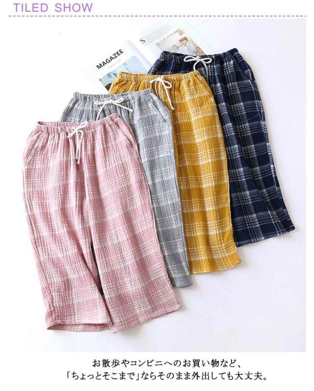 レディース ギンガムチェック 綿 夏 おしゃれ ズボン 春秋 7分丈 部屋着 ポケット ショートパンツ ハーフパンツ 涼しい チェック ルームパンツ ルームウェア コットン 薄手 短パン ゆったり 肌着 ステテコ 女性 プレゼント ギフト