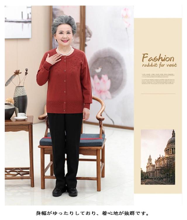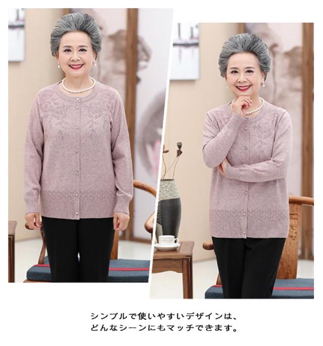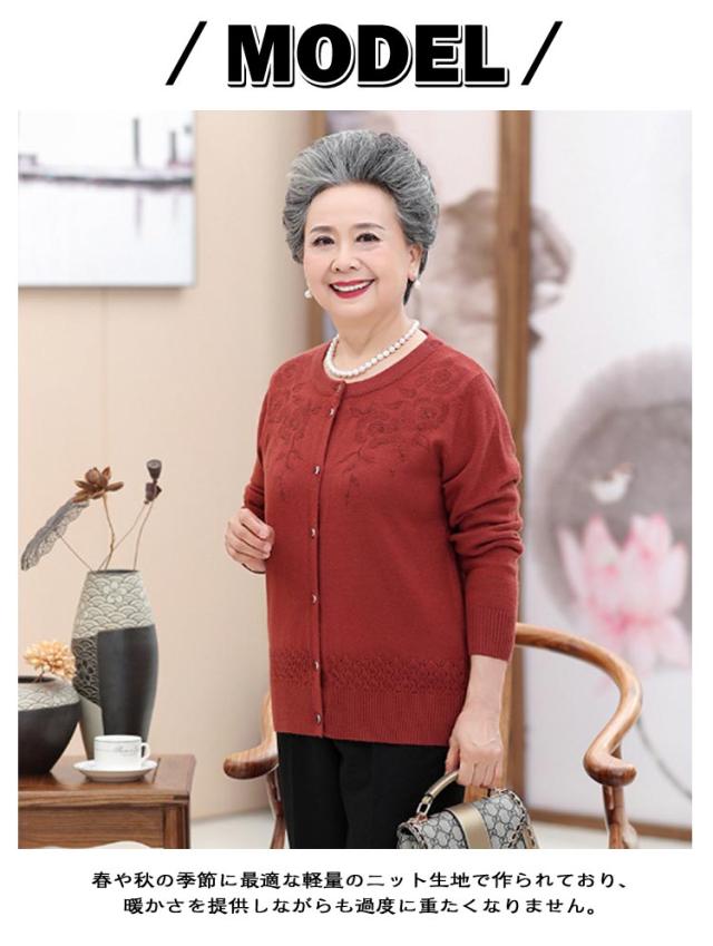 敬老の日 羽織り 秋冬 春 トップス クルーネック ニット レディース 90代 ウール混 おしゃれ 洋服 薄手 花柄 60代 70代 80代 シニアファッション おばあちゃん ニットカーディガン ミセス 祖母 お年寄り 高齢者