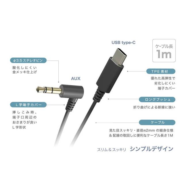 USB Type-C to AUX 変換ケーブル 1m スマホ 音楽 カーナビ オーディオ機器接続ケーブル 【メール便 送料無料】