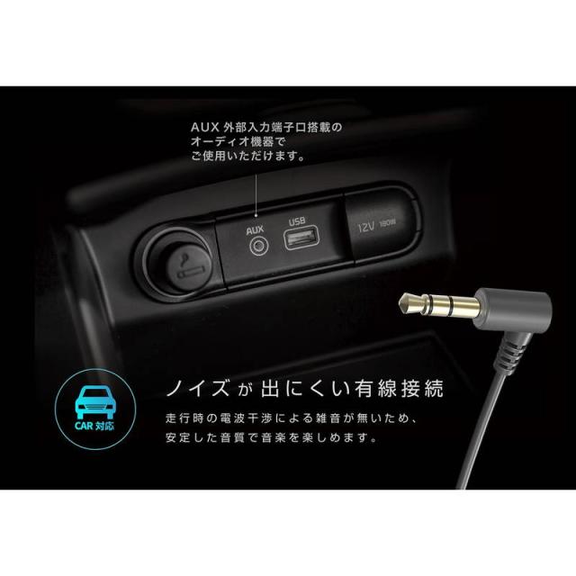 ※カーオーディオにAUX端子口(φ3.5ステレオ)が無い車では、本製品を使用できません。
