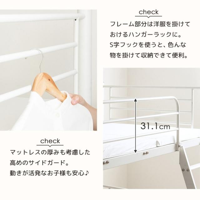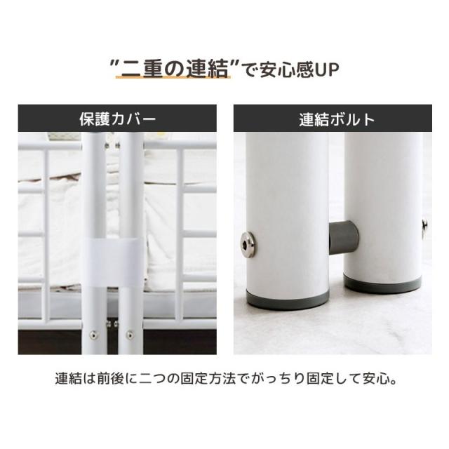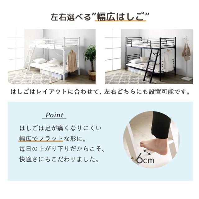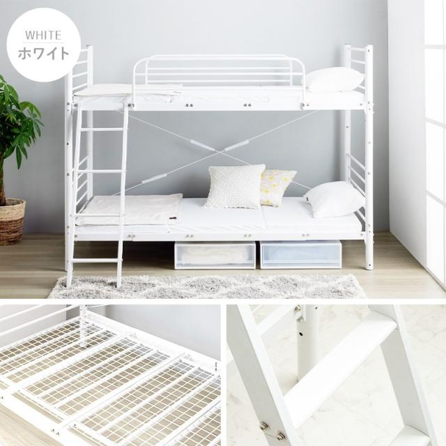 二段ベッド キングベッド パイプ 横連結 分離 2段ベッド 連結ベッド シングル 頑丈 はしご 高さ調整 ホワイト