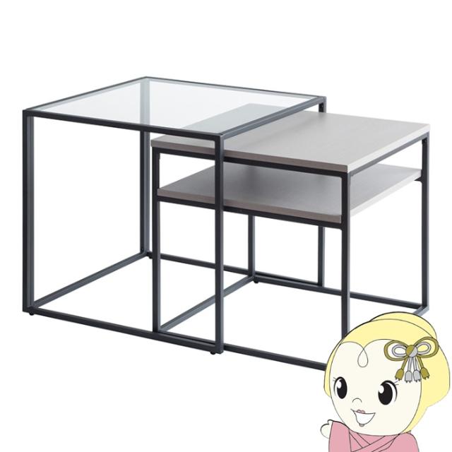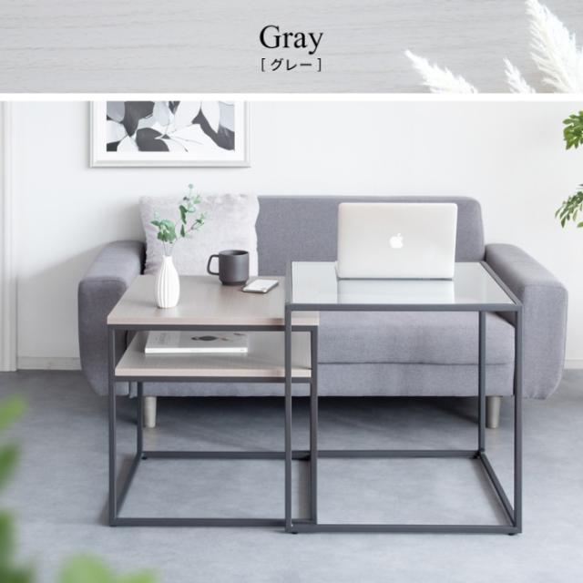 センターテーブル ネストセンターテーブル Poluca(ポルカ) グレー ガラス天板 合板 棚付 重ねて使える
