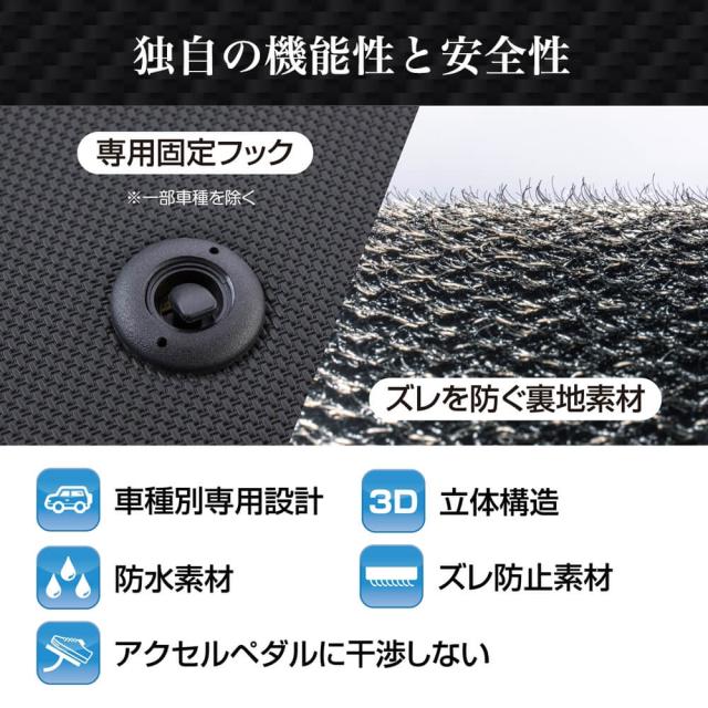 車種別専用設計でフロア面にぴったりフィット!立体構造が足元の汚れを逃さない