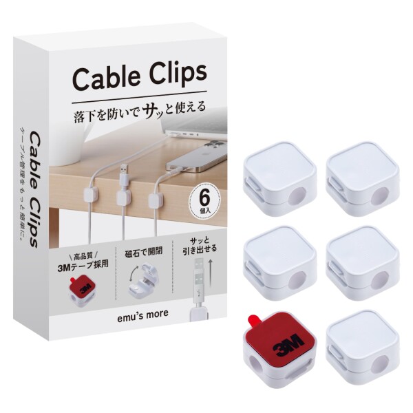 ?【多くの方に選ばれる理由】 「emu’s more」のケーブルクリップは、日常の整理整頓をサポートし快適な暮らしをするために考えられたアイテムです。高粘着力の3Mテープを採用し、長くお使いいただける耐久性が魅力。また、スリムな1.8cm×1.8cmのスクエア型デザインは、空間に馴染みやすく、日本で企画・販売されている信頼性の高さも魅力です。