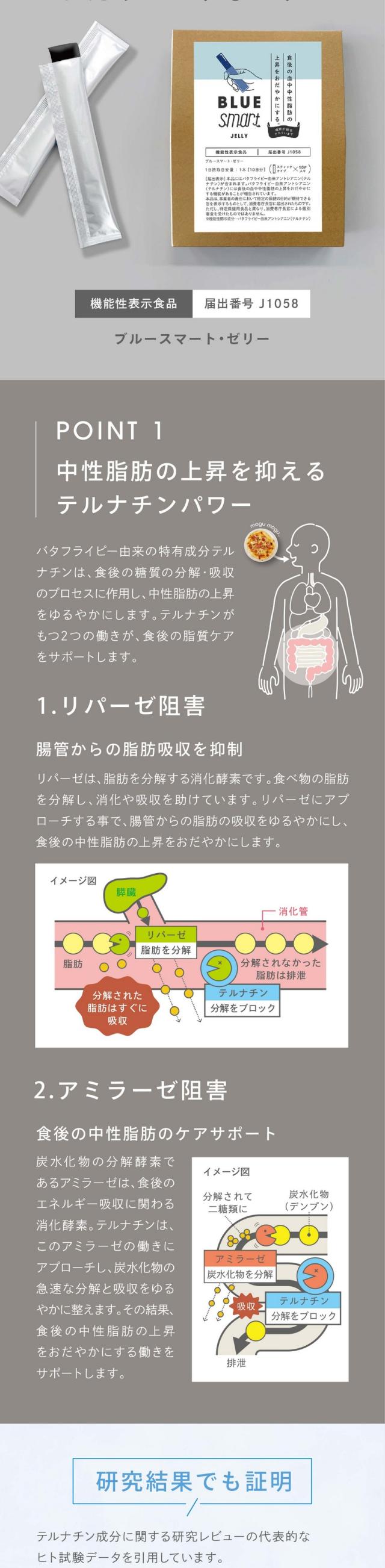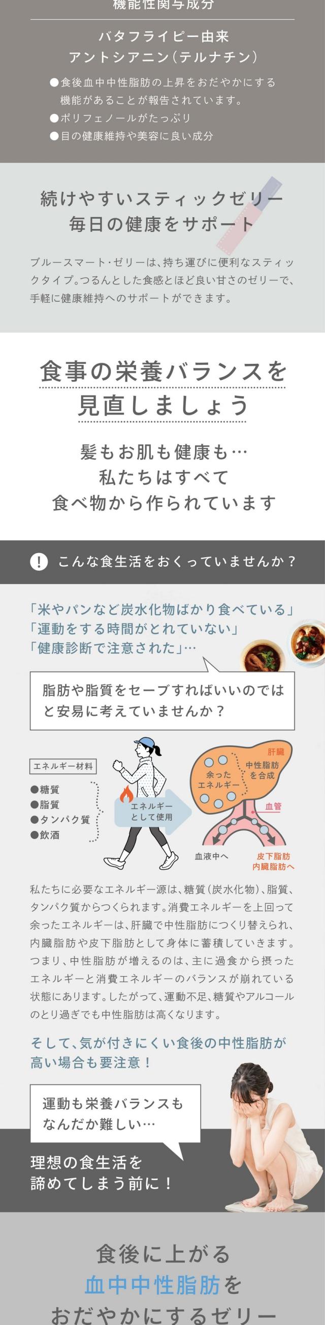ブルースマート・ゼリー 10g×10本入り(機能性表示食品)テルナチン配合 食後の中性脂肪対策 青いゼリー スティックタイプ メール便 送料無料