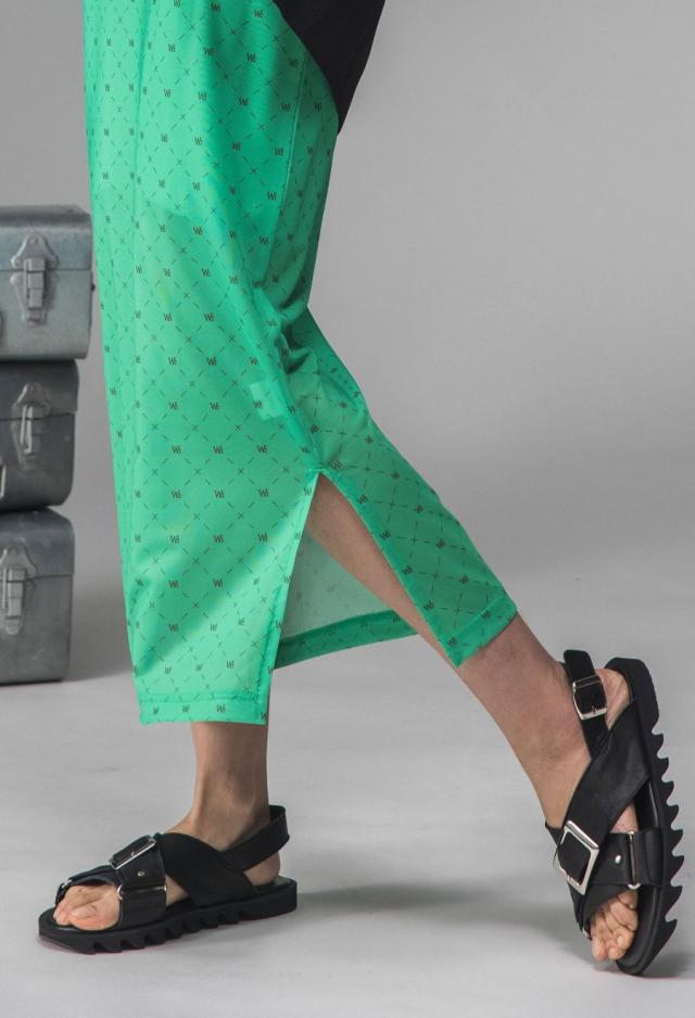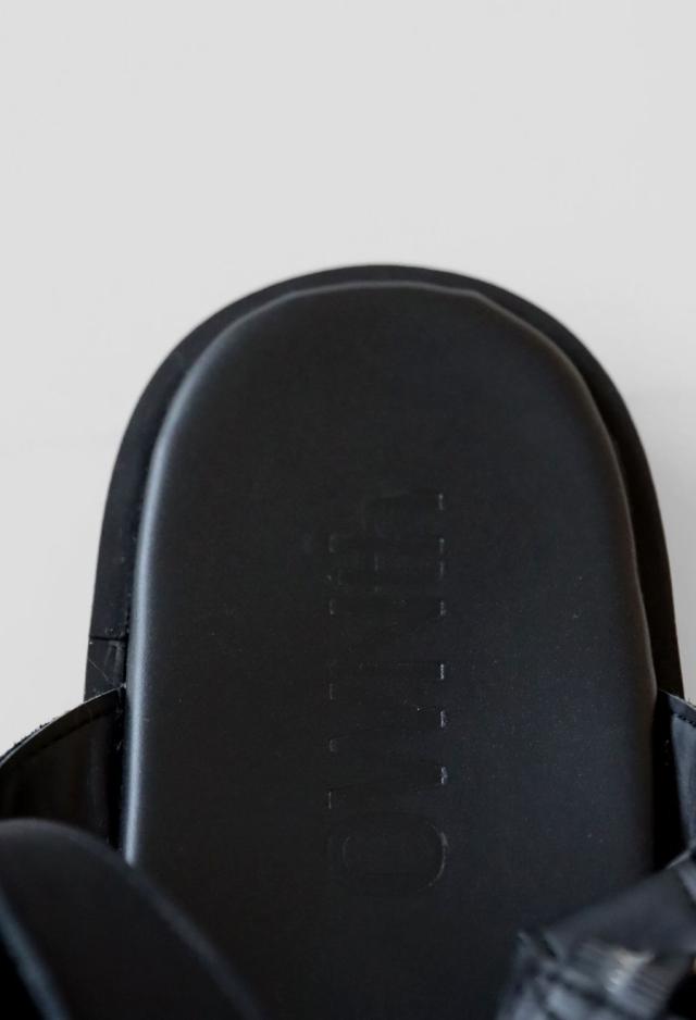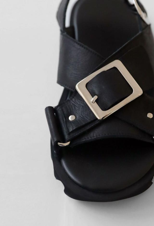 存在感あるクロスデザインとシャープなカットラインが、足元にアクセントを加えます。