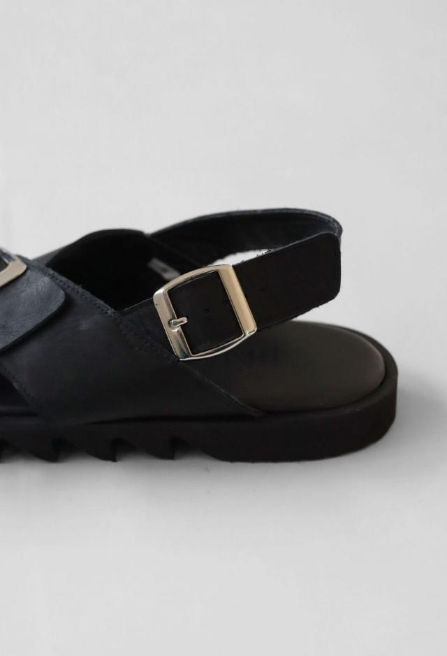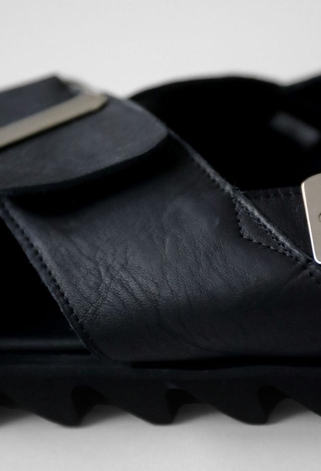 高級感漂う本革アッパーに、大きなメタルバックルをあしらった厚底メンズサンダルです。