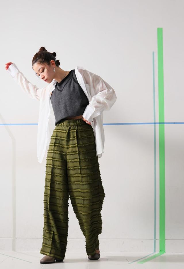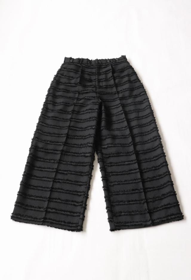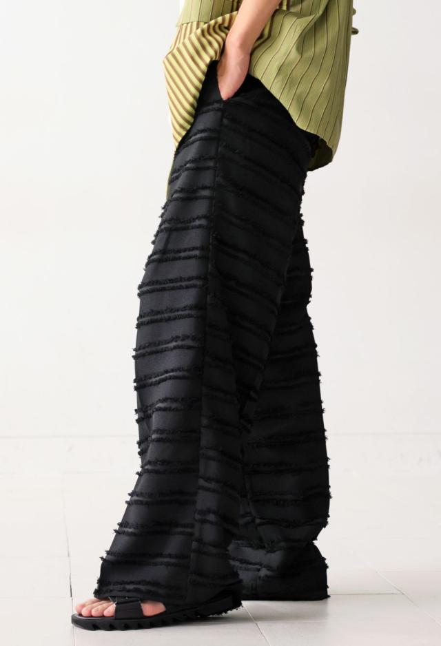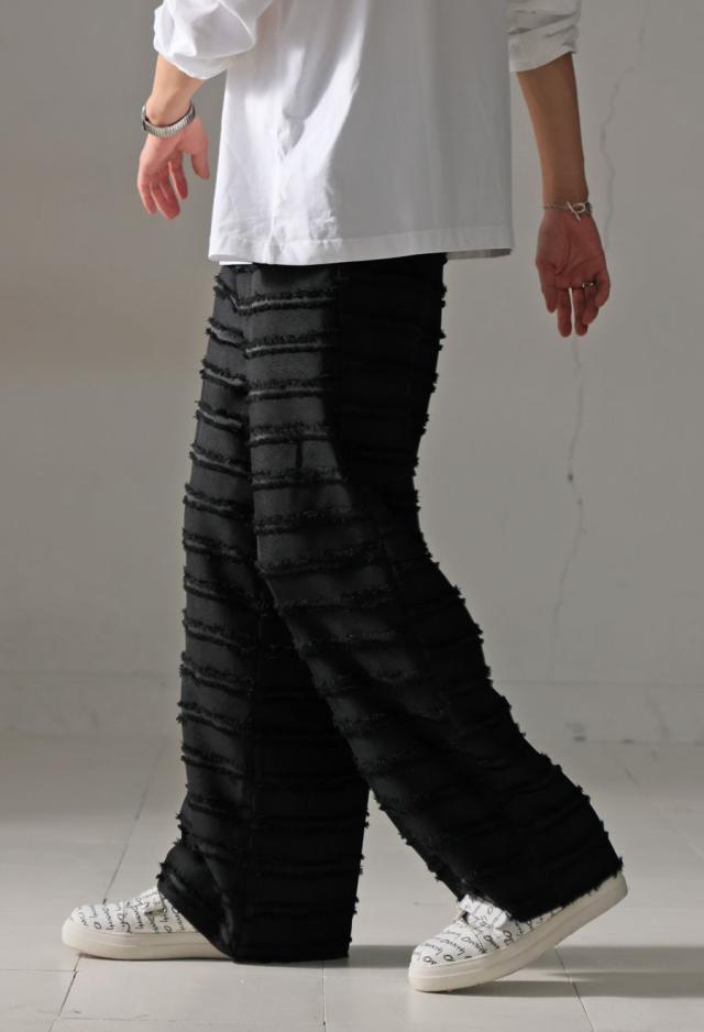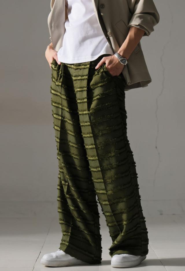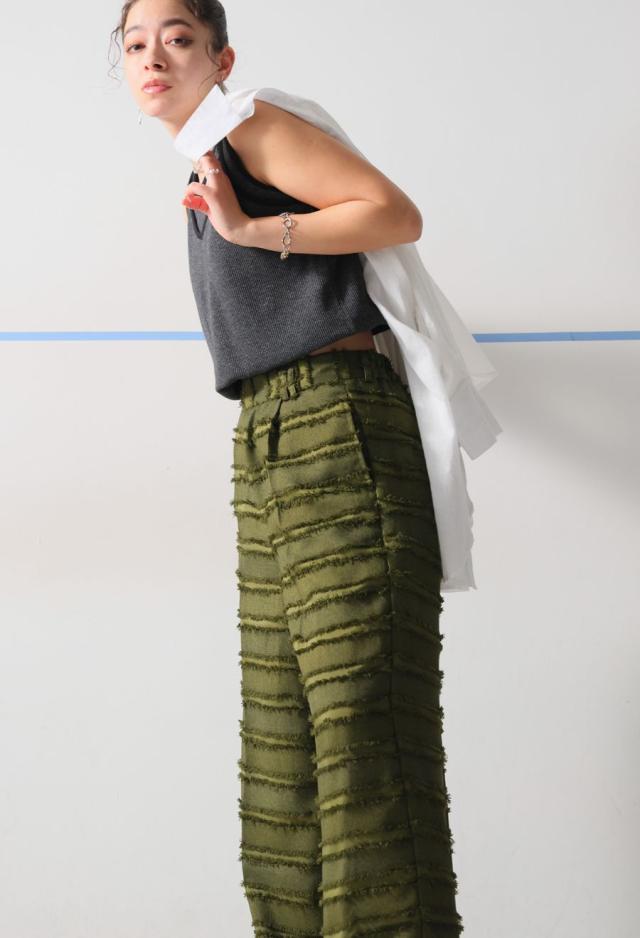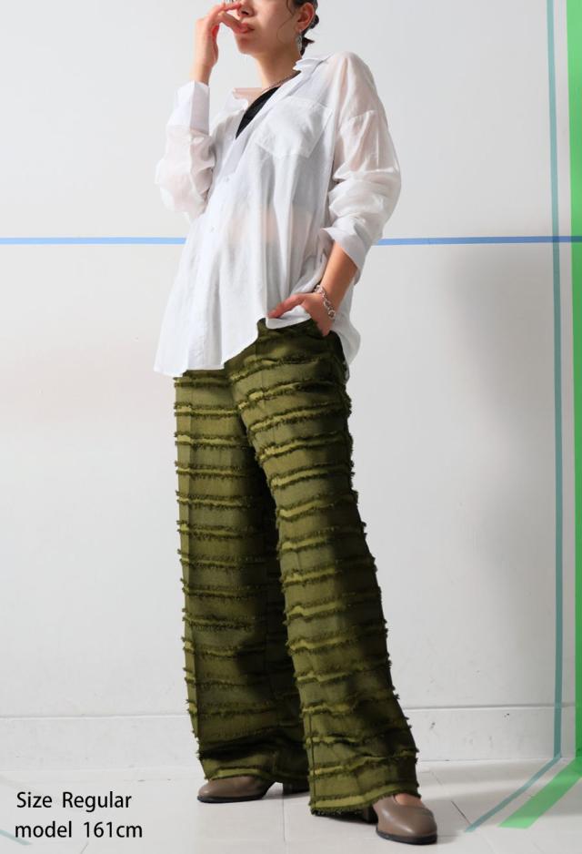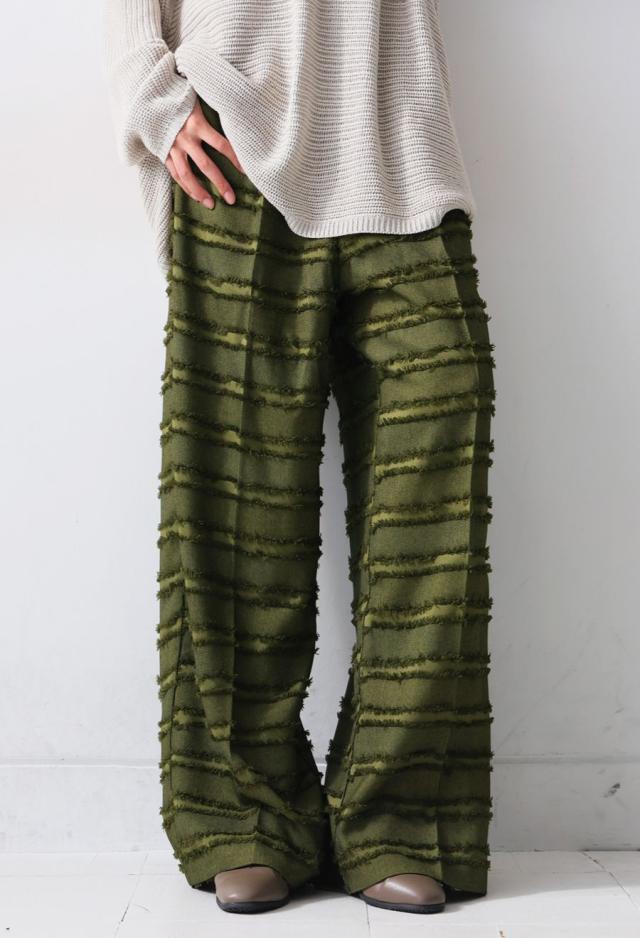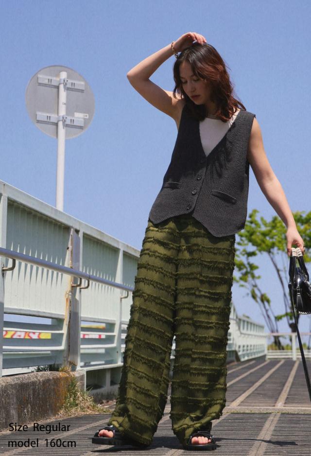 存在感のあるボーダー柄フリンジが目を惹くパンツです。