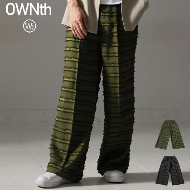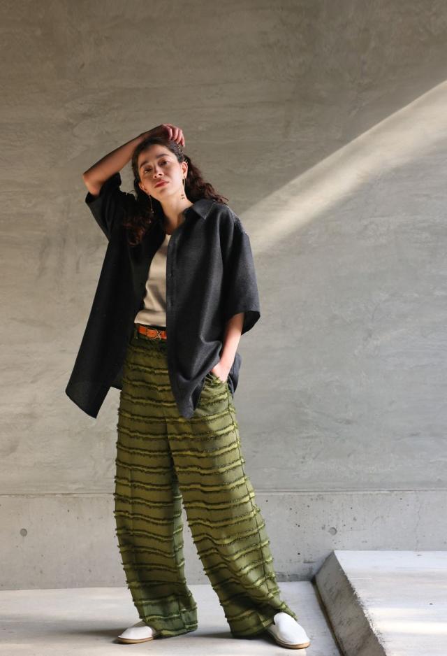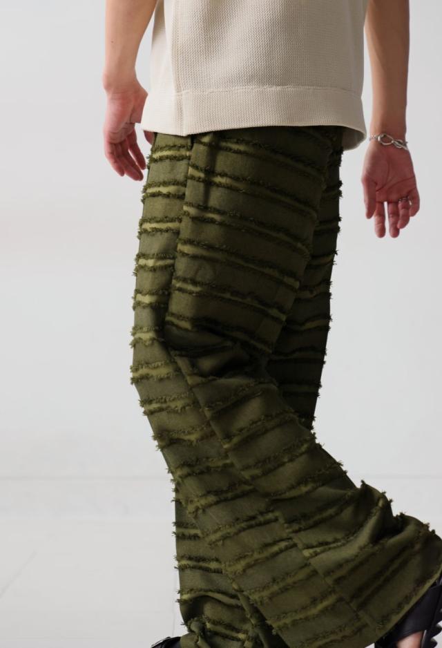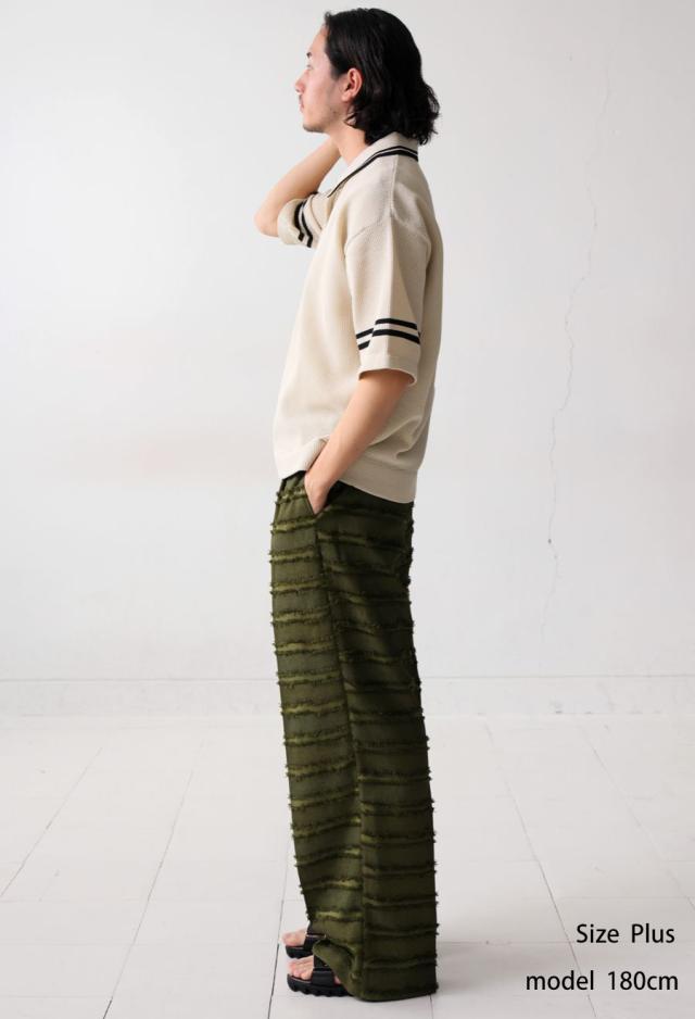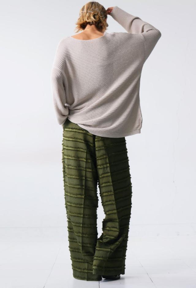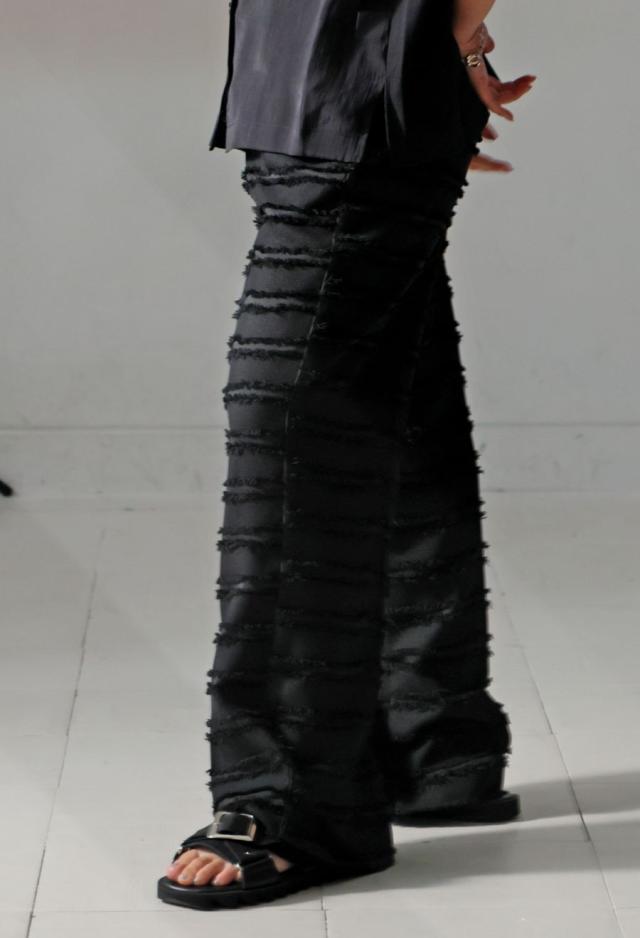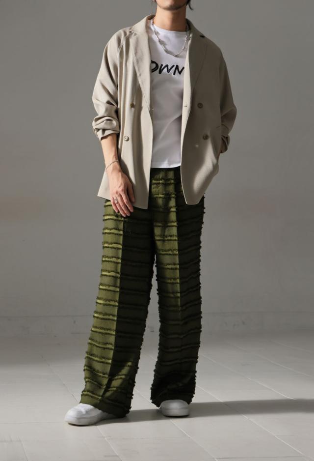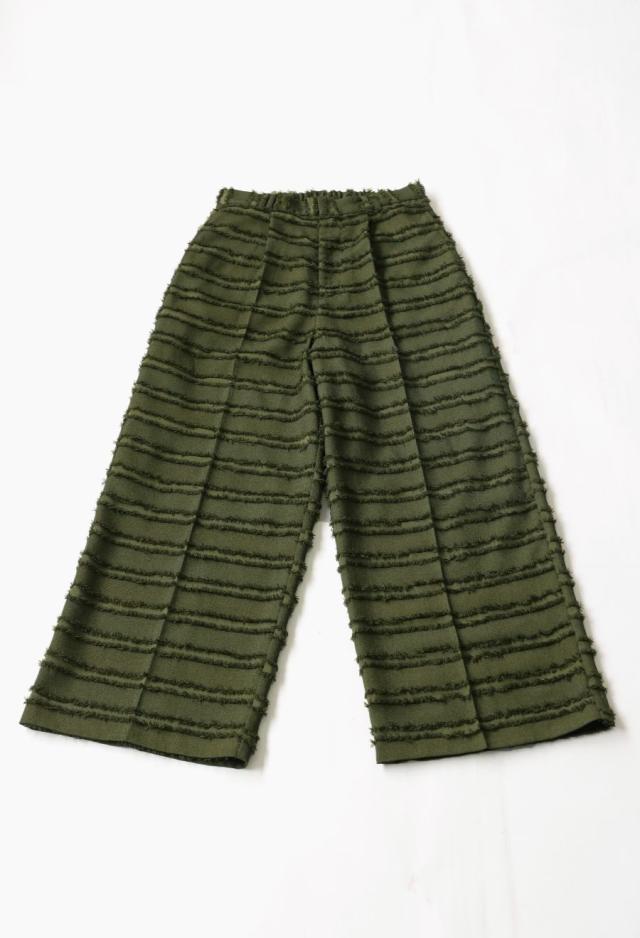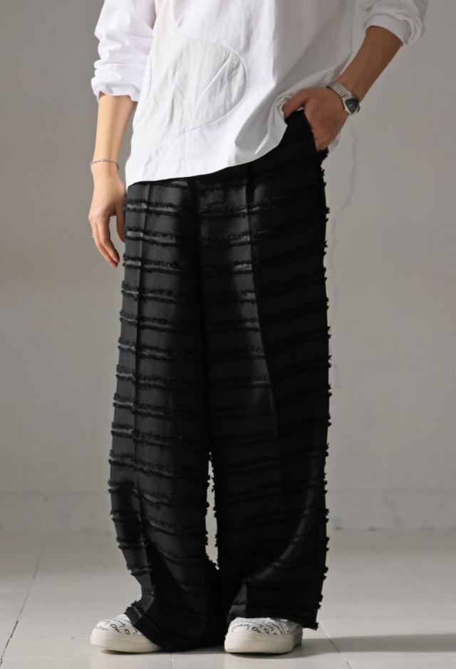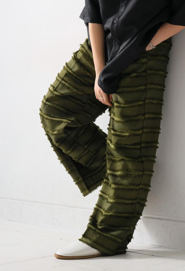 存在感のあるボーダー柄フリンジが目を惹くパンツです。