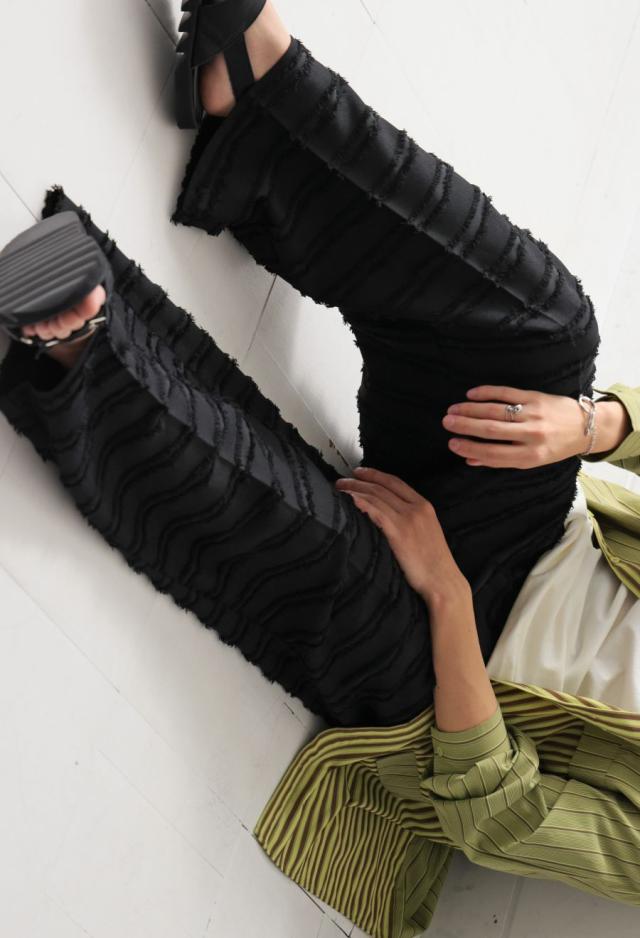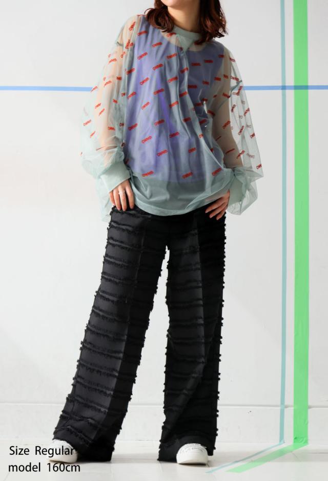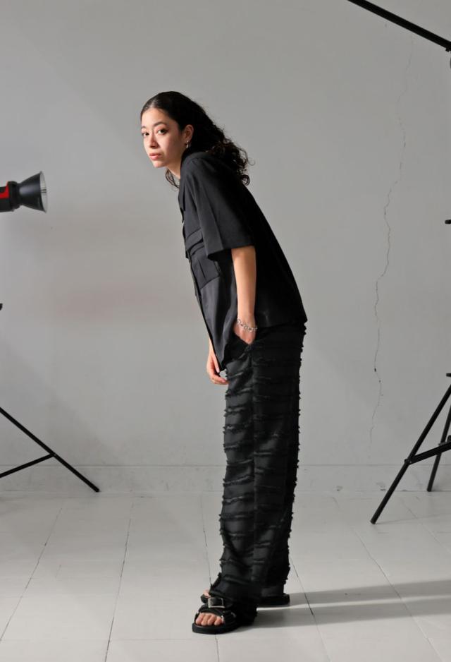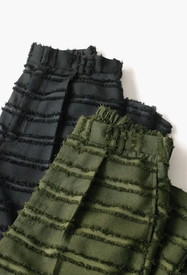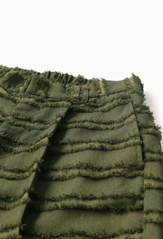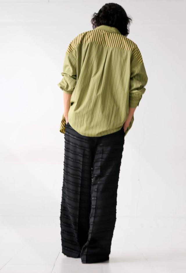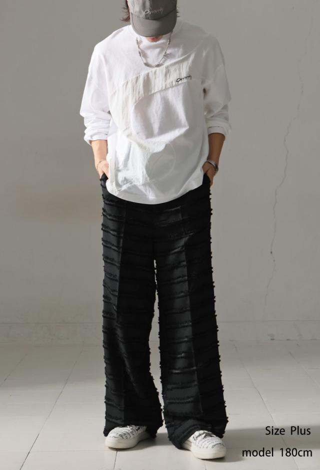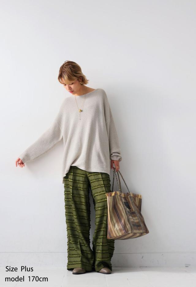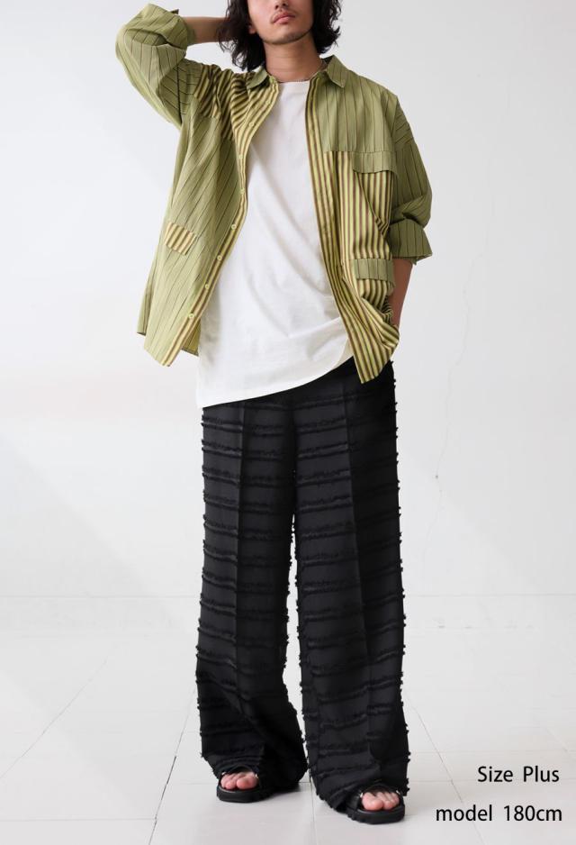 存在感のあるボーダー柄フリンジが目を惹くパンツです。