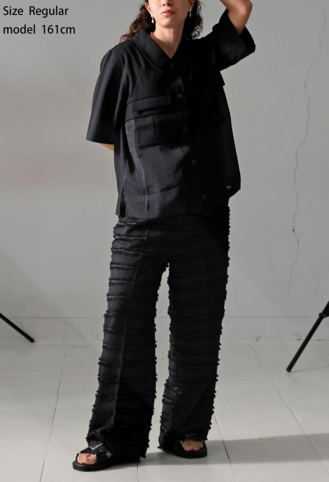 ポリエステル×レーヨン混のさらりとした風合いで、夏場も心地よく着用できます。
