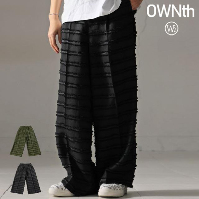 owt-0047z フリンジ ロング ボーダー 柄 柄パンツ ウエストゴム 両サイドポケット ベルトループ付き 軽量 デイリー 旅行 シンプル カジュアル ナチュラル ユニセックス 着回し