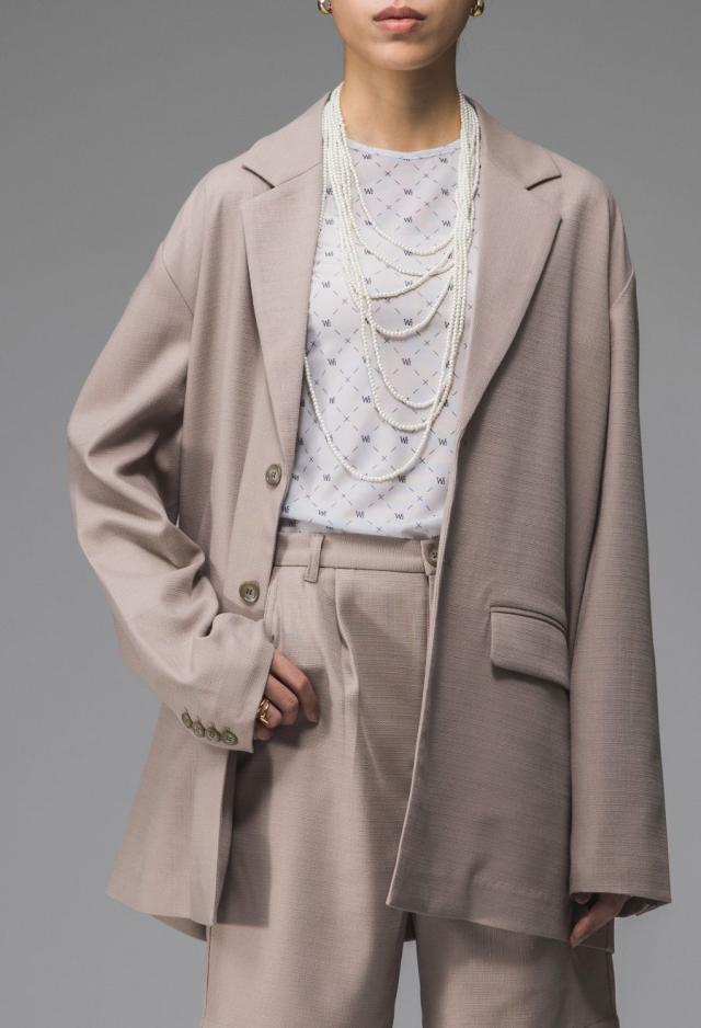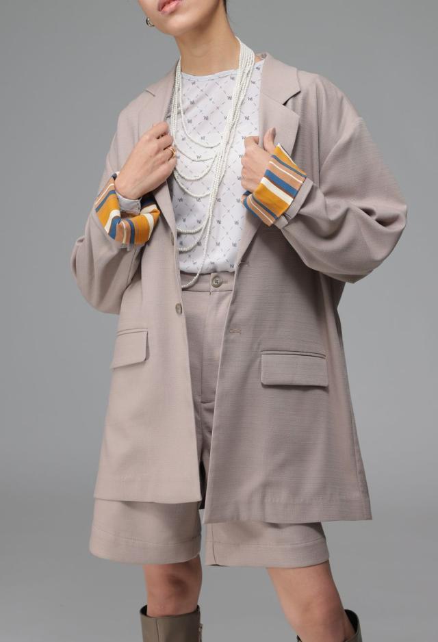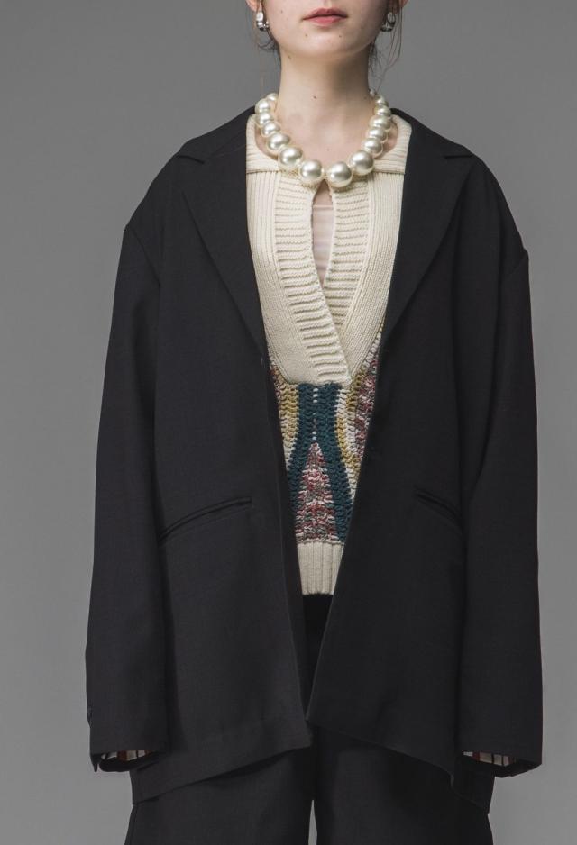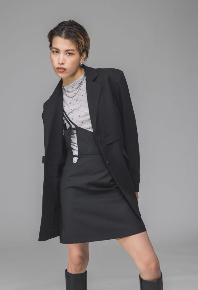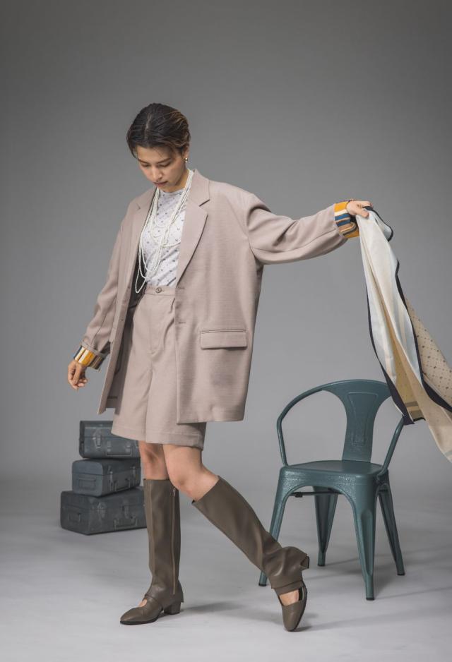 ネックラインは端正なテーラード仕様で、程よくモード感を感じさせる落ち着いた印象に。