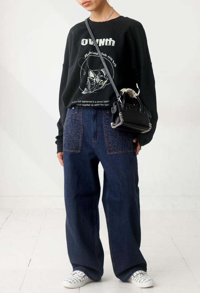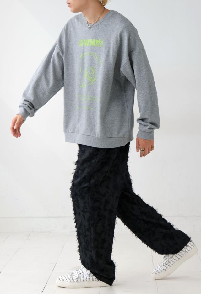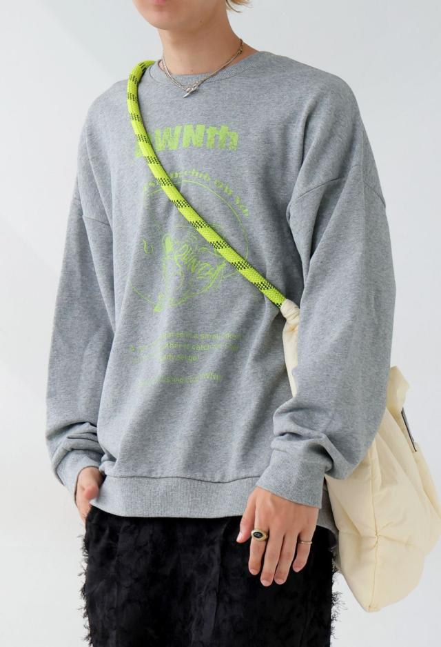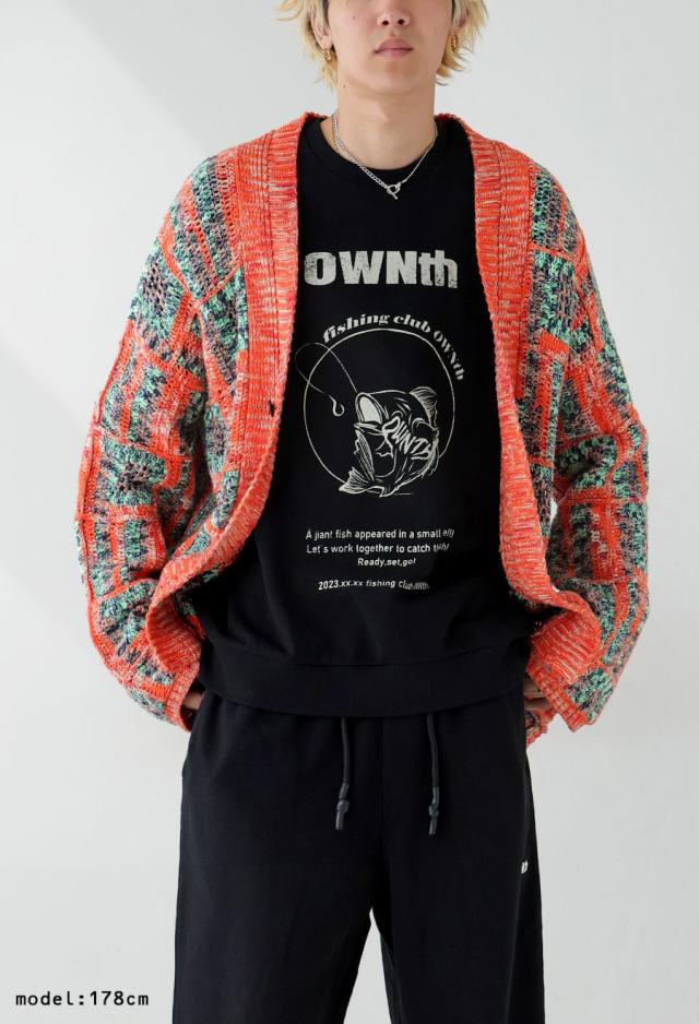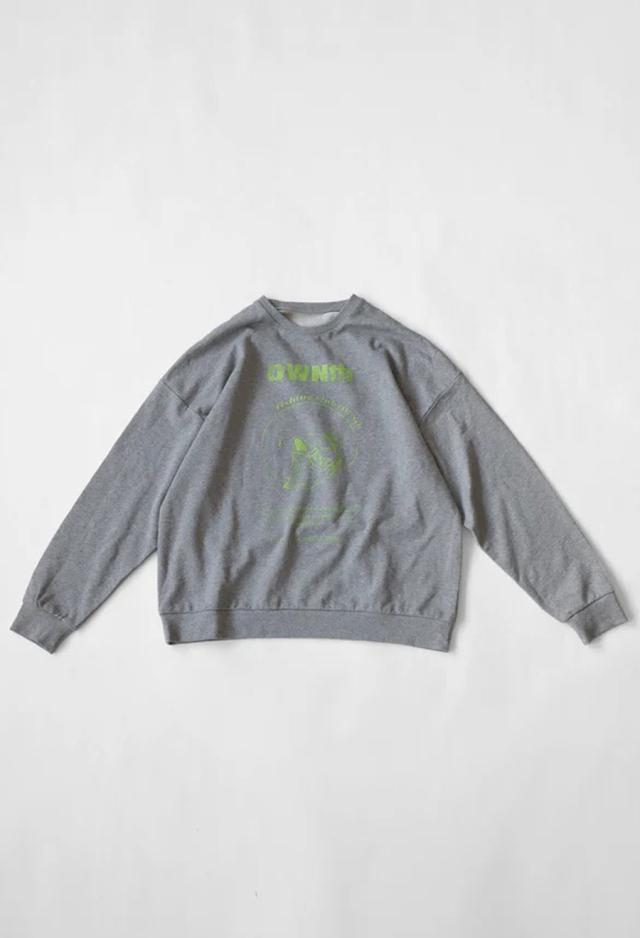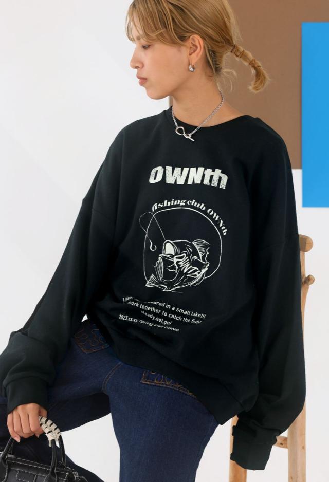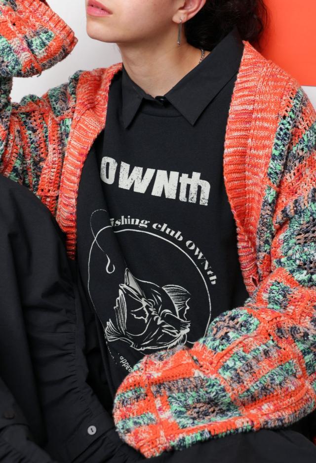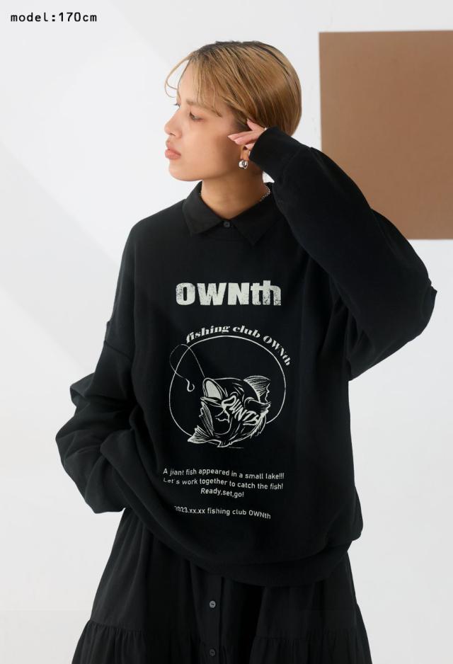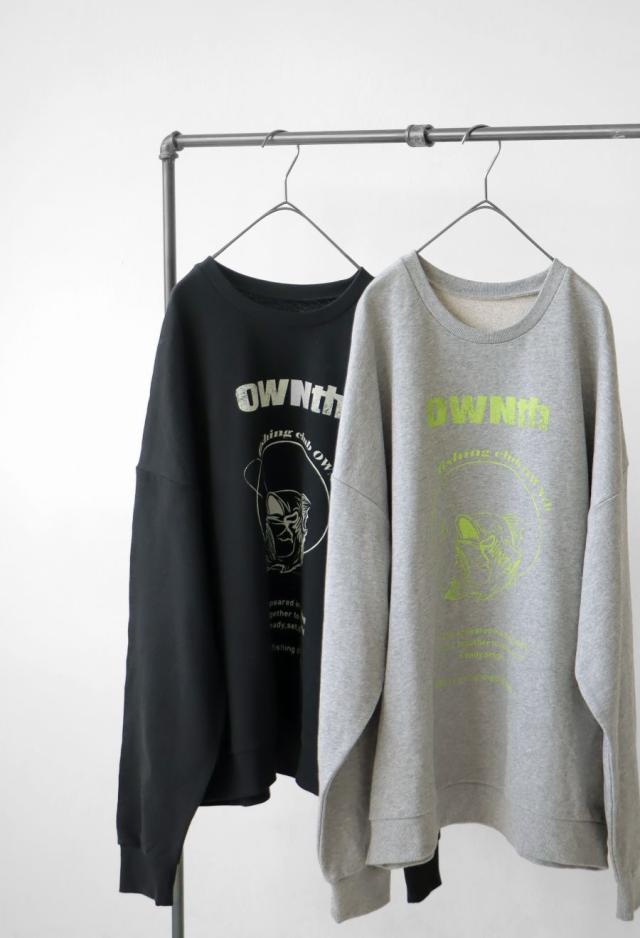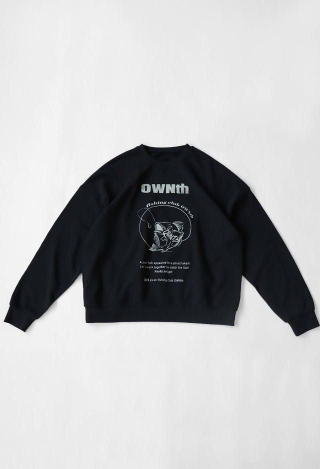 程よいルーズ感とクラックプリントのUSED感が魅力の、OWNth "Fishing Club" クルーネックプルオーバーです。