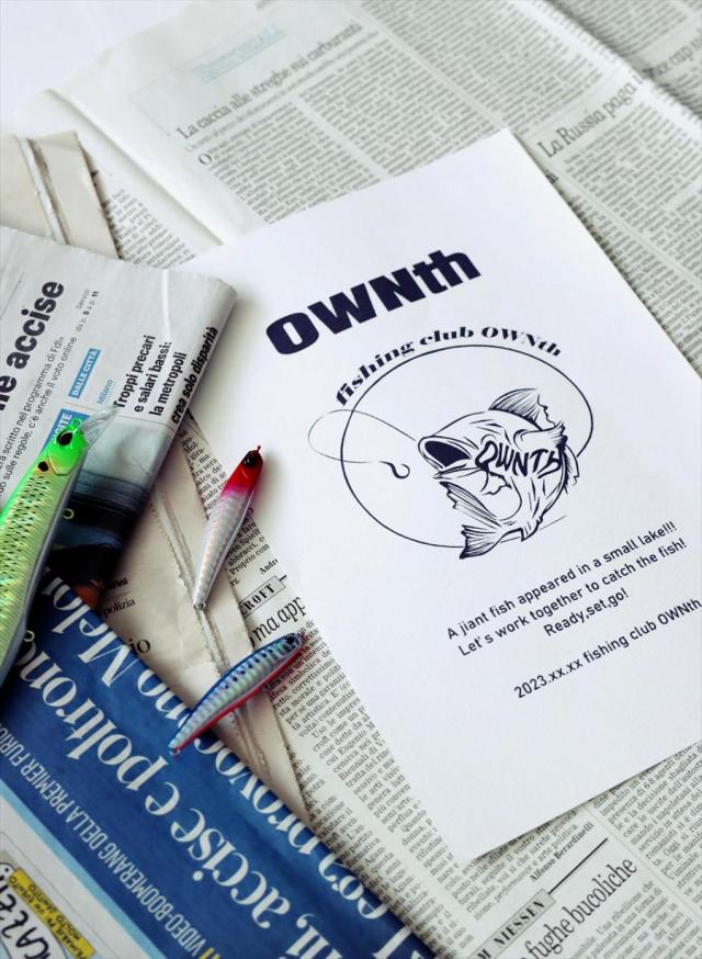 フロントに描かれたデザインは、50年以上前にOWNth fishing clubが小さな湖で巨大な魚を釣り上げ、大きなニュースとなった——という架空のストーリーをもとに制作されたもの。