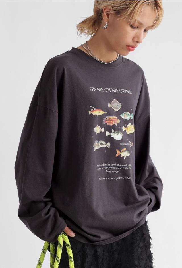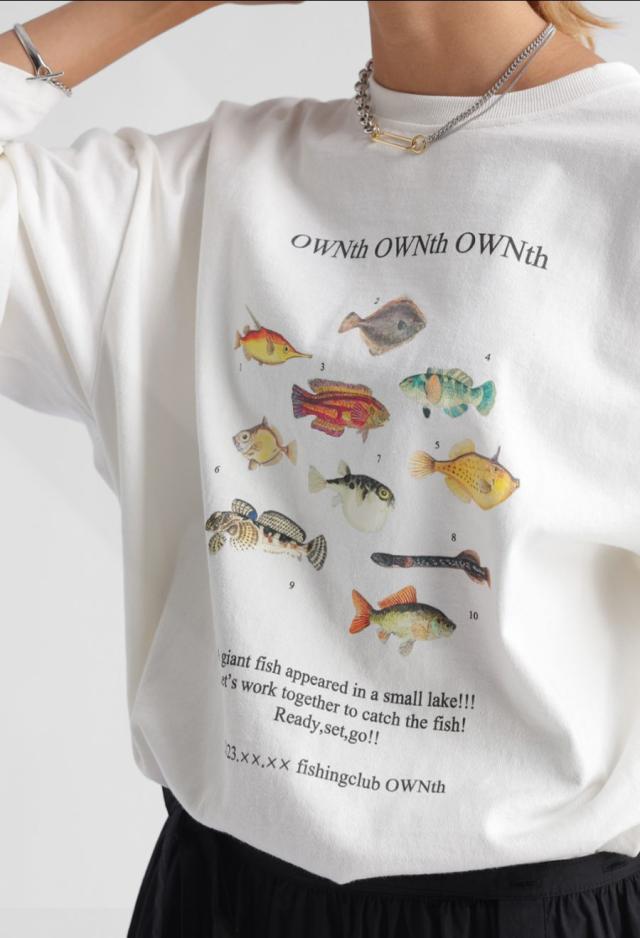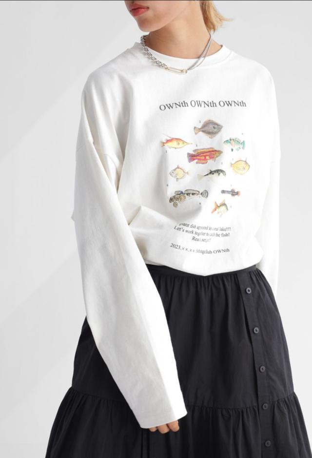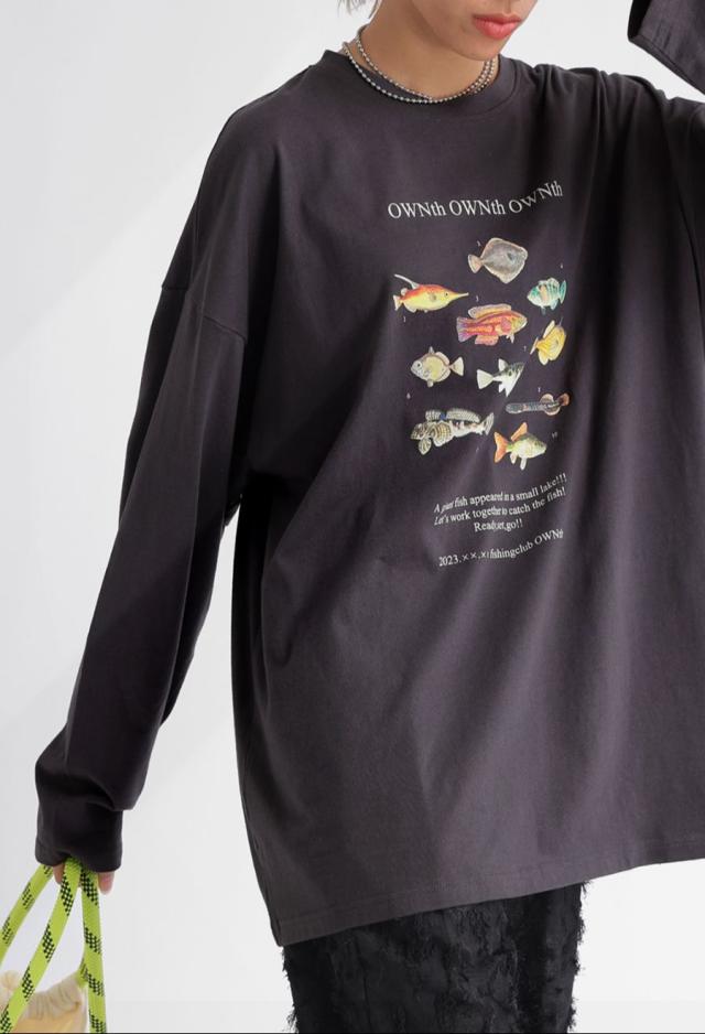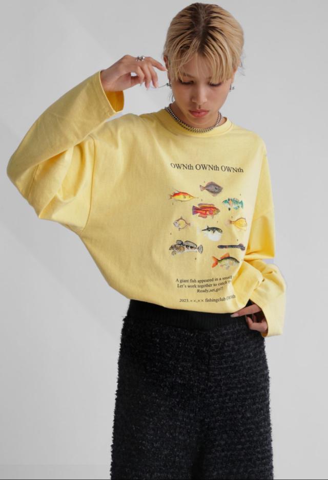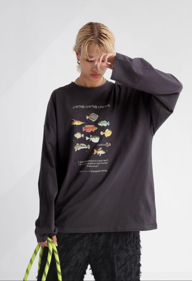 ラフに着こなすだけで存在感を発揮する、魚プリントが主役のロンT。