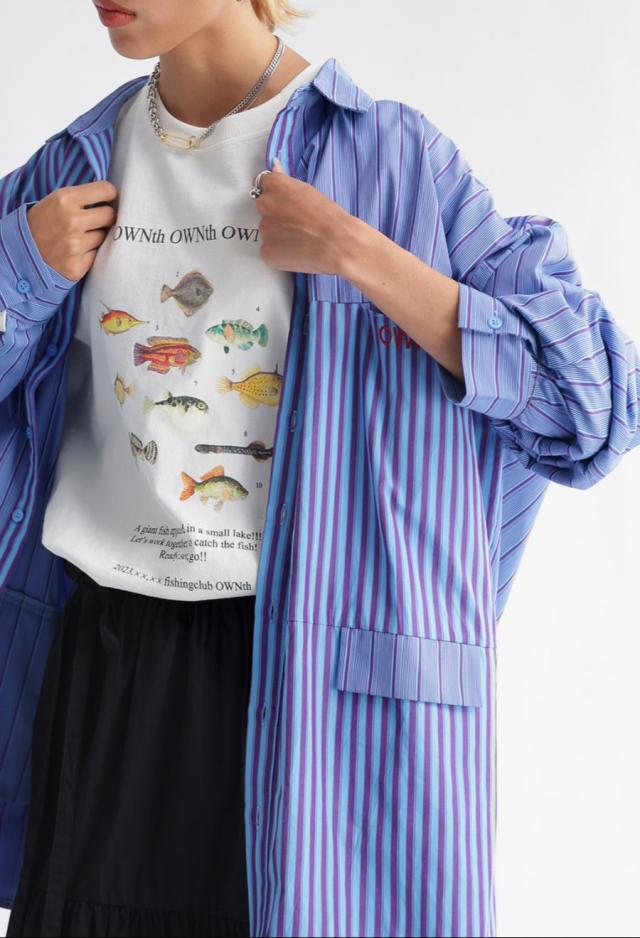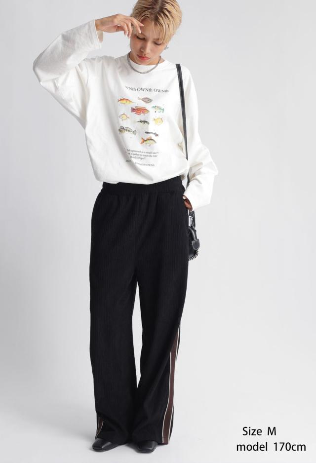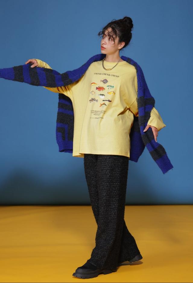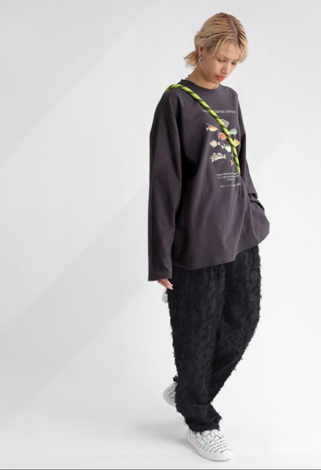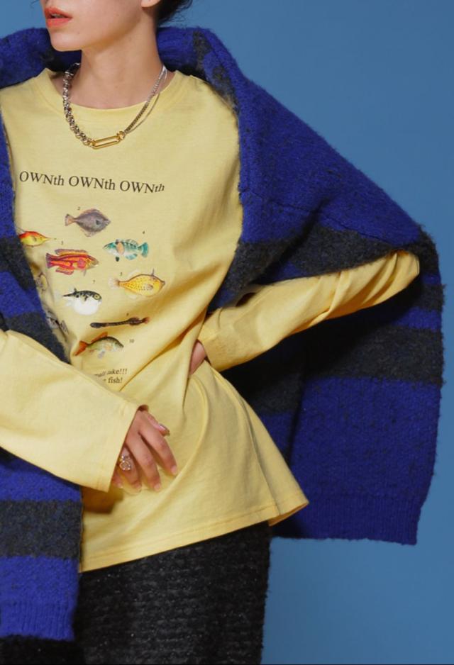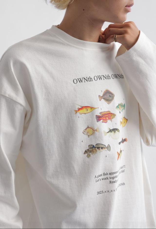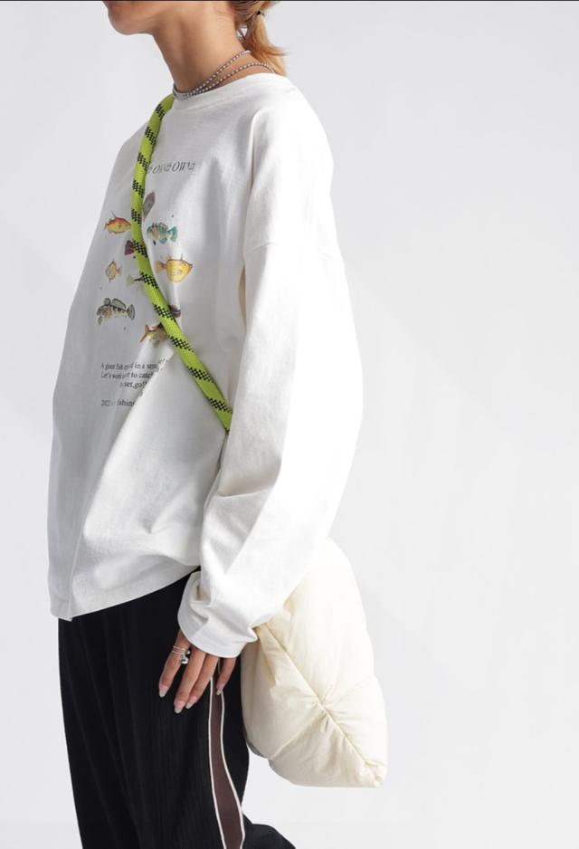 ラフに着こなすだけで存在感を発揮する、魚プリントが主役のロンT。