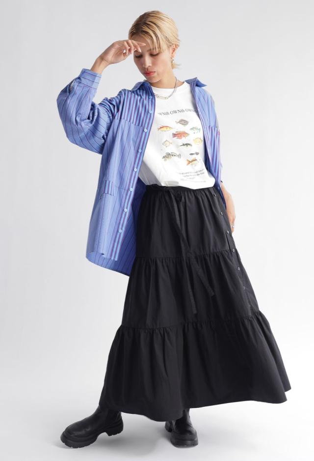 ヒップラインを程よく隠すゆったりとした丈感で、体型カバーにも頼れるシルエットです。