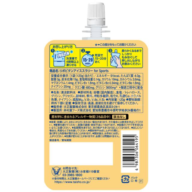 大正製薬 リポビタン アイススラリー Sports キャップ付き ハニーレモン風味 120g×6個 メール便(代引き不可) 熱中症対策カード付き