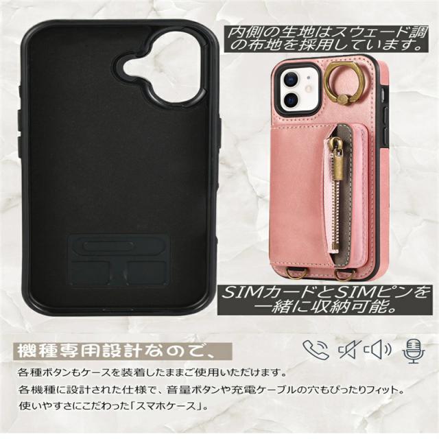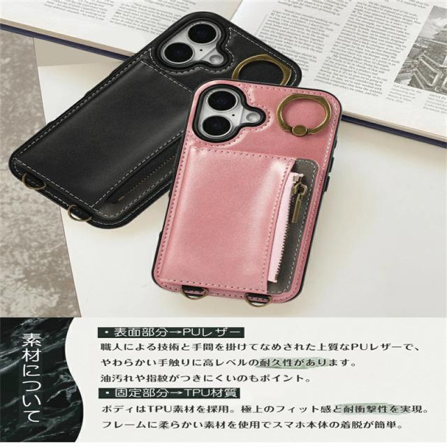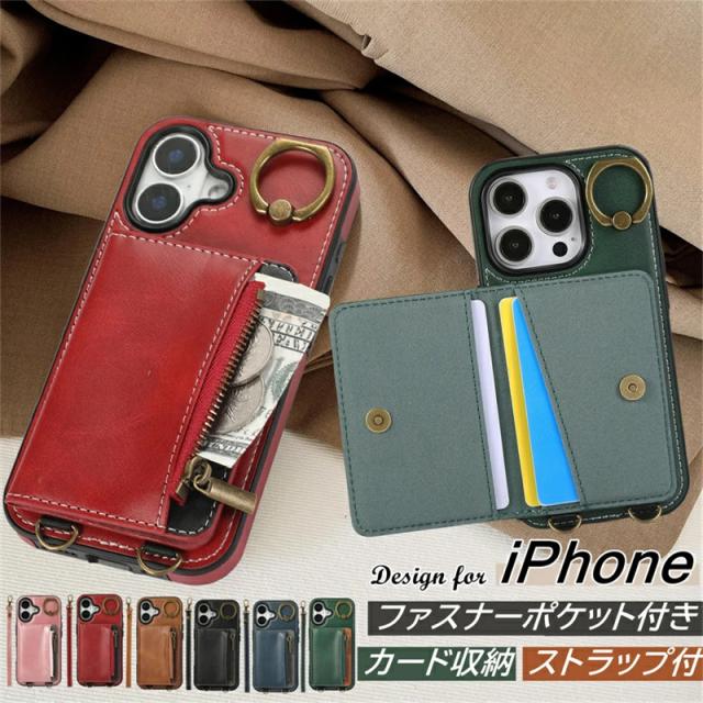 iphone12 プロケース ストラップ付き iPhoneケース アイホン12 12promax 12pro 16E 14 13 XS XR 7 iphone8 小銭入れ付き スマホケース iPhone15 iPhone16e iPhone14 Plus Pro Max カードケース アイホン12proケース 携帯カバー レザー 背面 ファスナーポケット付き