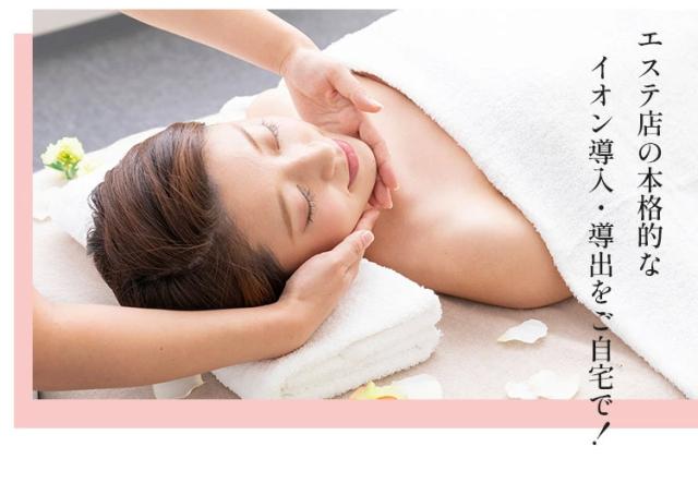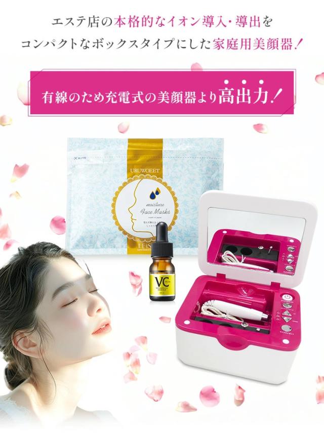 エステ店の本格的なイオン導入・導出力をコンパクトなボックスタイプにした家庭用美顔器。有線のため充電式の美顔器より高出力。