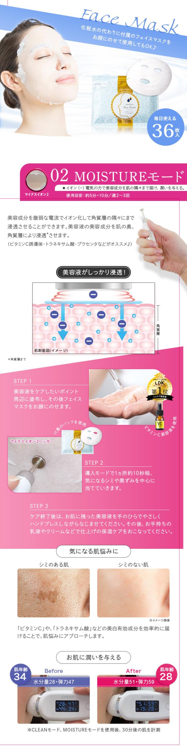 美容液成分を微弱な電流でイオン化して角質層の隅々にまで浸透させることができます。美容液の美容成分を肌の奥、角質層へより浸透させます。