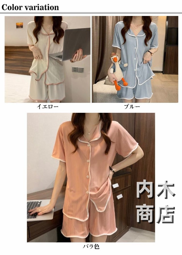 レディース 上下セット ストレッチ性 可愛いパジャマ 伸縮性 半袖 冷感 ルームウェア 夏 大きい 部屋着 無地 かわいい ナイトウェア セットアップ 前開き 大人用 ショートパンツ パジャマ 母の日 夏用パジャマ 半袖パジャマ ばくね 送料無料
