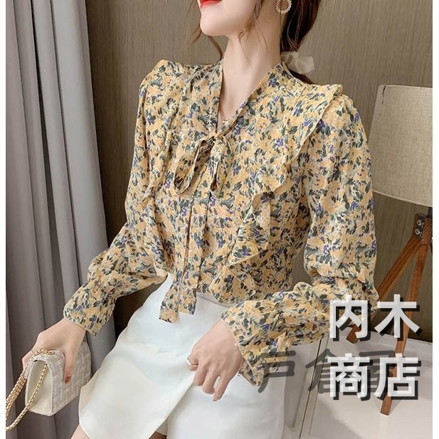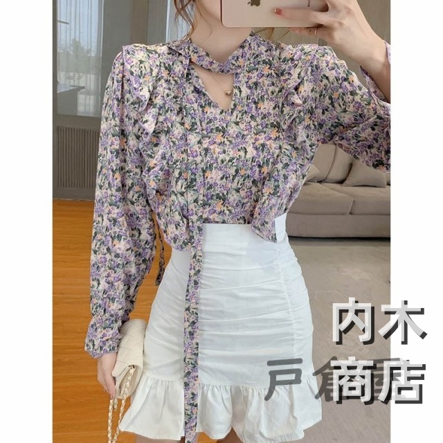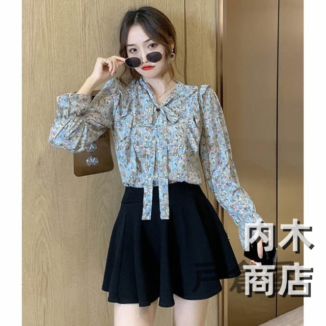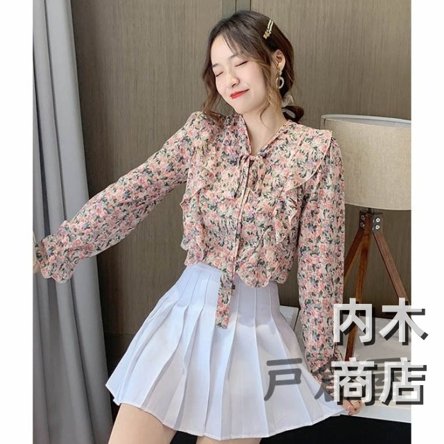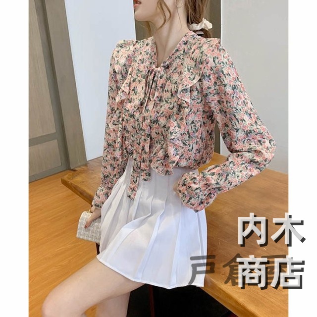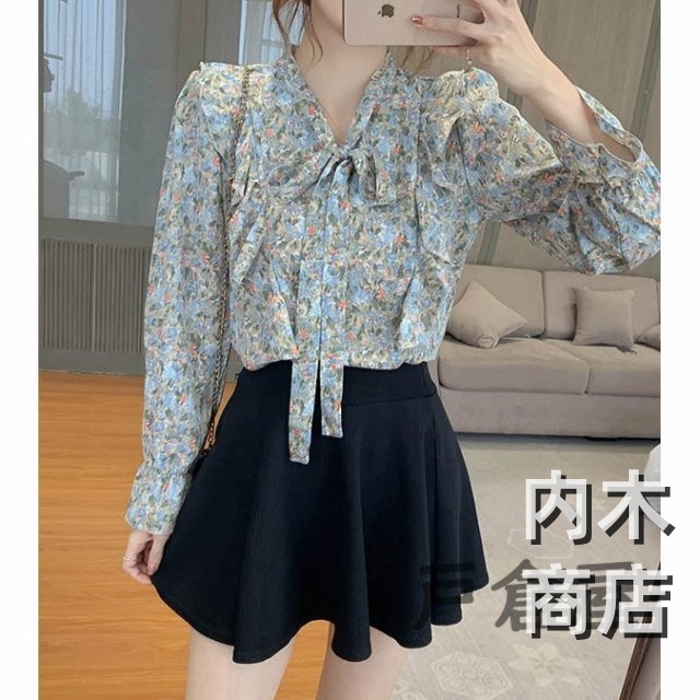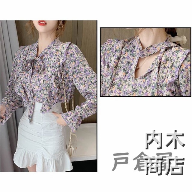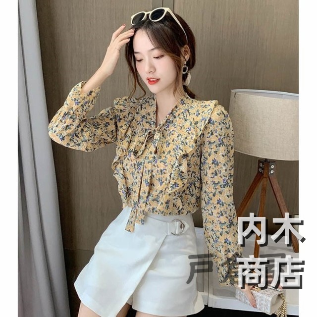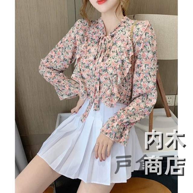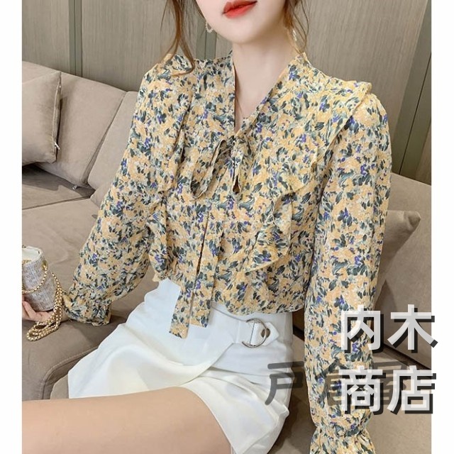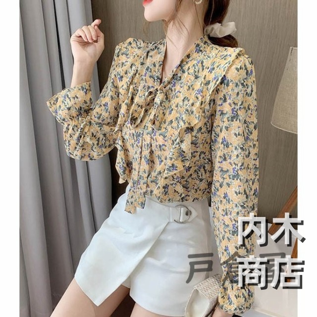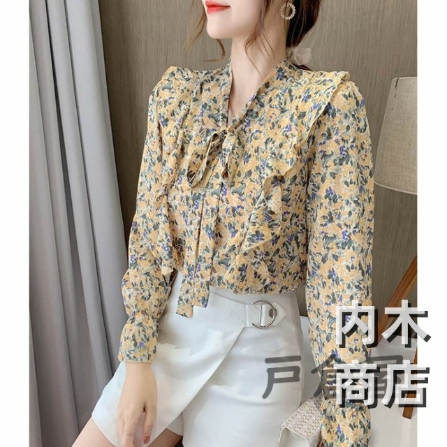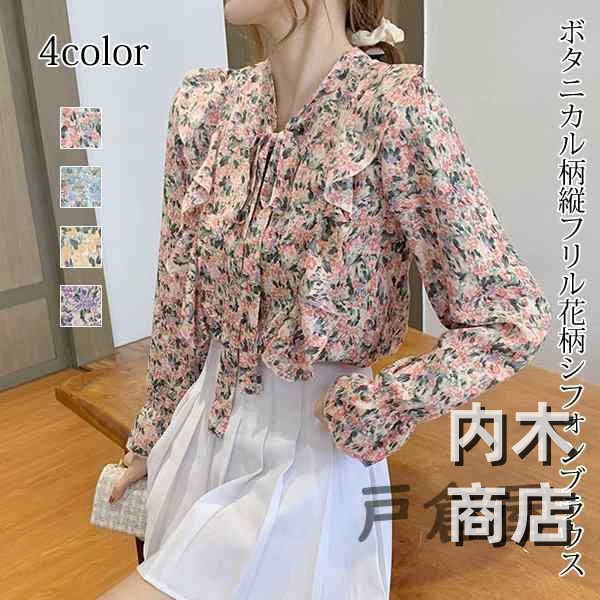 売上急増中 レディース 在庫限りの大特価 品質安心 縦フリル フェミニン ボタニカル柄 トップス シフォンブラウス ボウタイネック シャツブラウス 今だけ フラワー 花柄ブラウス 収納便利 即納対応中