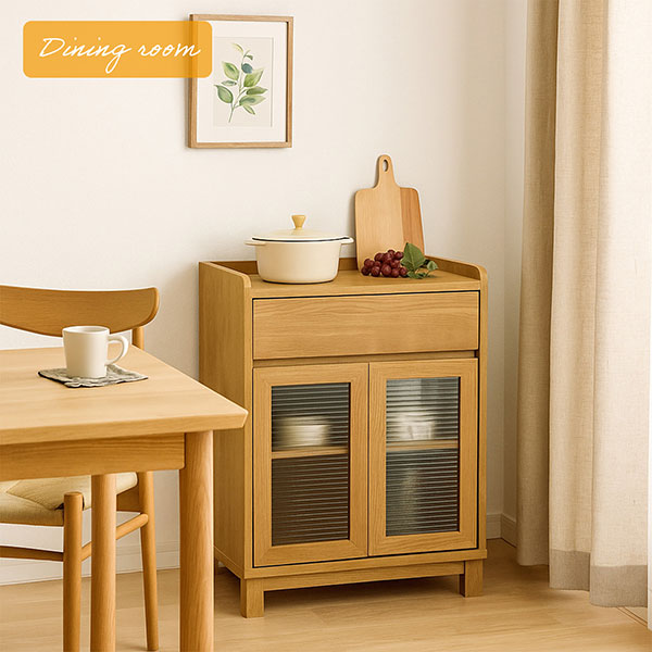 高品質とナチュラルなデザイン性を両立させた、省スペース型収納家具シリーズ「フィニット」のキャビネット。 ◆フィニットキャビネットの特徴 ・本体は完成品で、脚を取り付けるだけの簡単組立仕様。 ・天然木のようなリアルな木目シート(日本製)を採用し、温かみと高級感を兼ね備えた仕上がりになっています。 ・ナチュラルな色合いで、どんなインテリアにも合わせやすいデザインです。 ・引き出し1杯と扉付き収納で、小物から日用品まですっきり収納。 ・目隠し効果がありつつ、中が少し見えるモールガラスで高級感アップ。 「見せる」と「隠す」をどちらも叶える、いいとこ取りの収納キャビネットです。 ・天板は縁付きのトレー形状で、物が転がり落ちにくく、よく使うアイテムを置くのに便利です。 ・丸みを帯びたフチデザインが、やさしい印象を与えます。 ・食器棚やリビングの飾り棚としても◎ ・コンパクトな見た目でしっかり収納。引き出しにはカトラリーや散らかりやすい小物をサッと収納。 ・扉内の収納には可動棚が1枚。3.2cm間隔で7段階調整が可能。 収納する物に合わせて高さを調整できるので、スペースを無駄なく使って収納できます。 ・高さ80cmで、使いやすいサイズ感です。 ■こんな場所で使えます!■ ・キッチンで食器棚として ・リビングで、小物の収納に。 ・ワンルームで、食器や小物の収納に。 |
