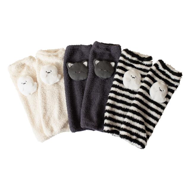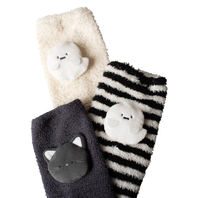 ハロウィンコーデのアクセントに。立体的なおばけと黒猫のモチーフが存在感抜群のお目立ちレッグウォーマーです。体温調節がしやすく、足元のアクセントにもなる便利アイテム。ハロウィンの撮影や、テーマパークなどのお出かけにもおすすめです。
