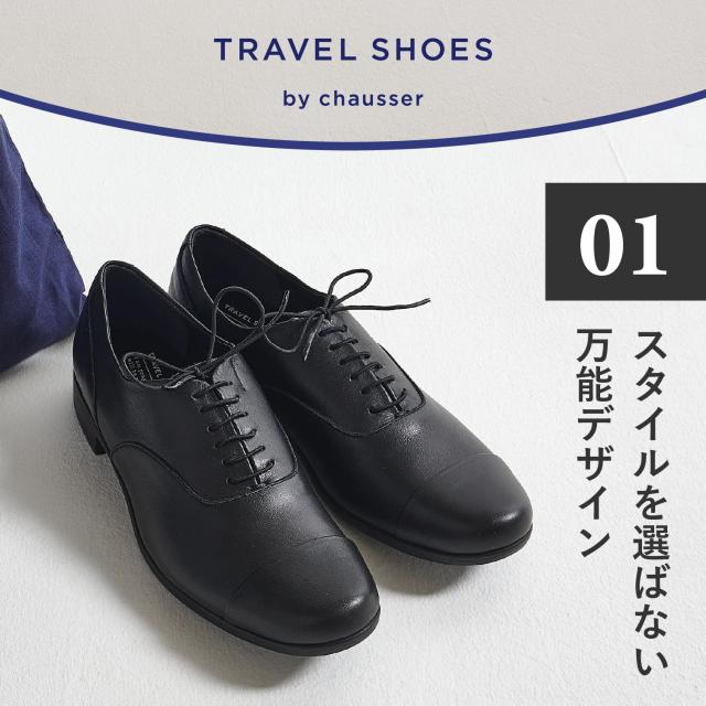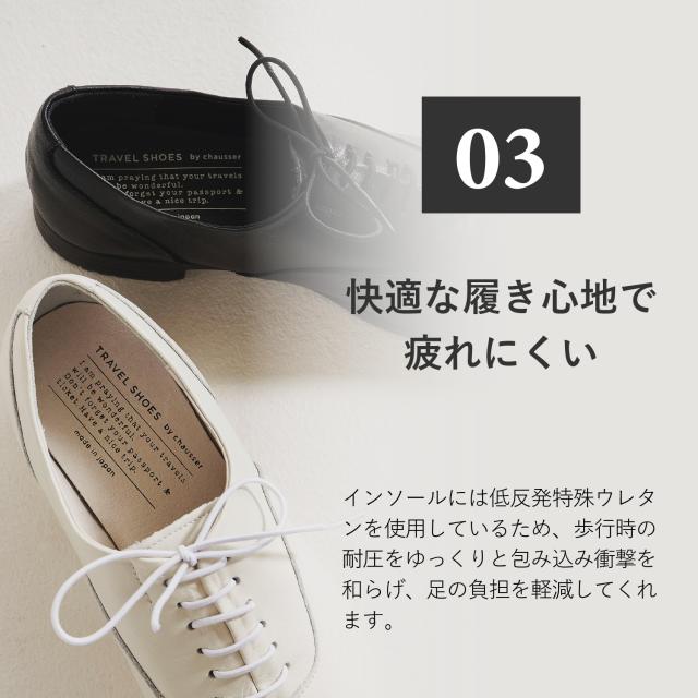 chausser ショセ トラベル シューズ ストレートチップ レースアップ レディース 本革 撥水 Eワイズ 日本製 ブラック ホワイト TR-001