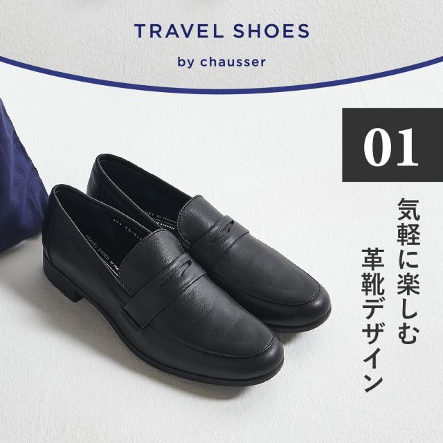 chausser ショセ トラベル シューズ ローファー レディース 本革 Eワイズ 日本製 LOAFERS ブラック 黒 TR-016
