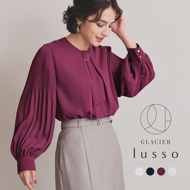 【商品名】袖プリーツボウタイブラウス