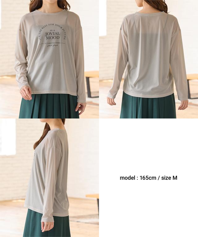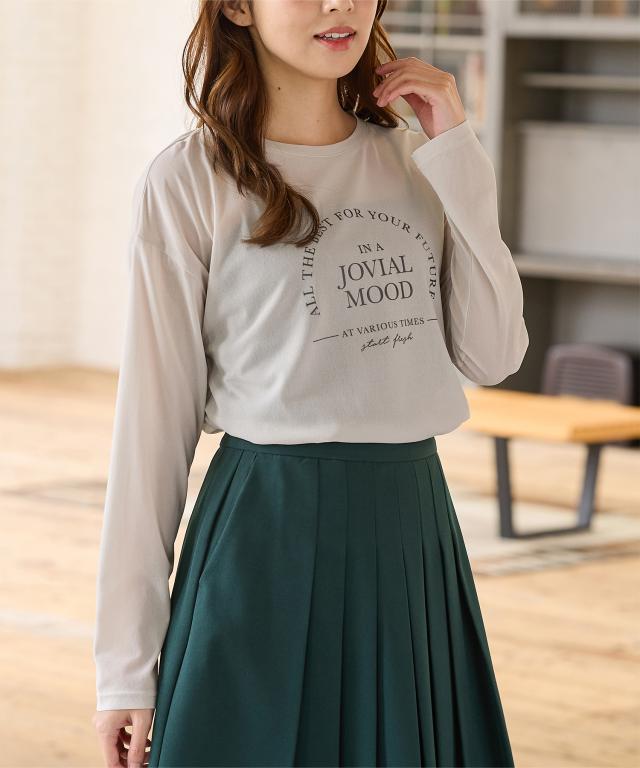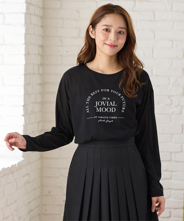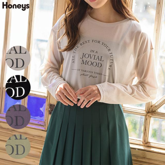 トップス Tシャツ ロンT 長袖Tシャツ カットソー 長袖 ロゴ シアー クルーネック ドロップショルダー レディース Honeys ハニーズ シアーロゴTシャツ