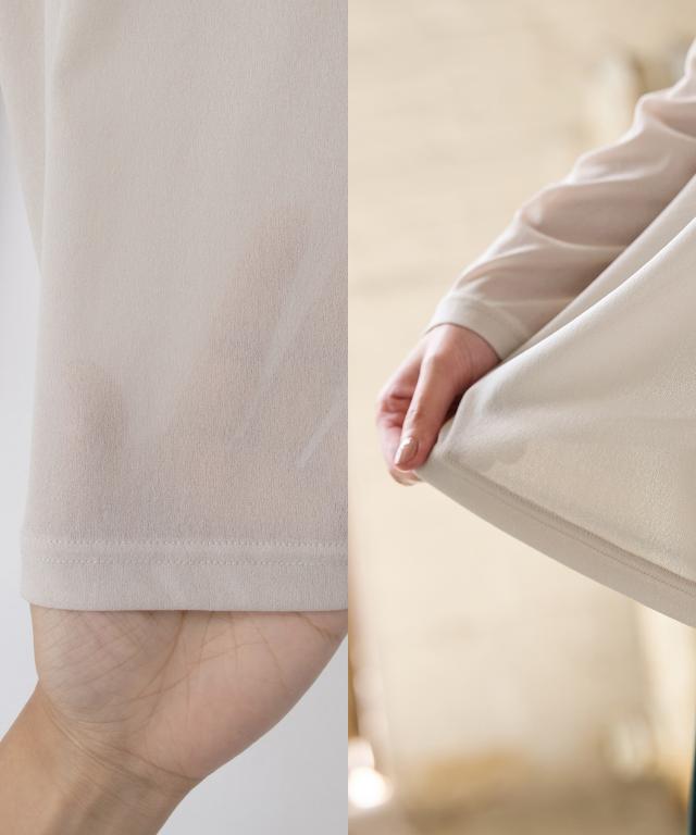 伸縮性のある、さらっとした肌触りのシアー素材。