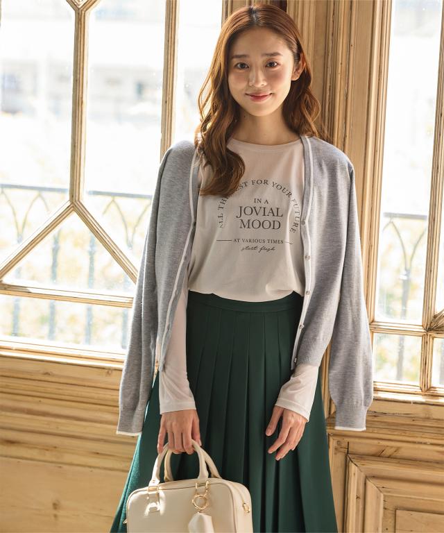 カーディガンやベスト、オールインワンのインナーなど、レイヤードスタイルに大活躍。