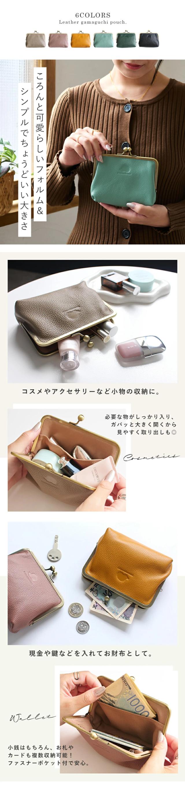 【全6色】がま口デザインがレトロかわいいマルチに使える本革ミニポーチ。