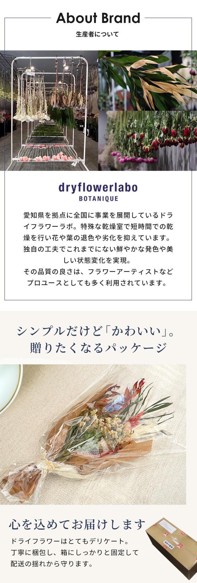 生産しているのは、生花に近い鮮やかさを持つ高品質なドライフラワーを提供するドライフラワーラボ(dryflowerlabo)。